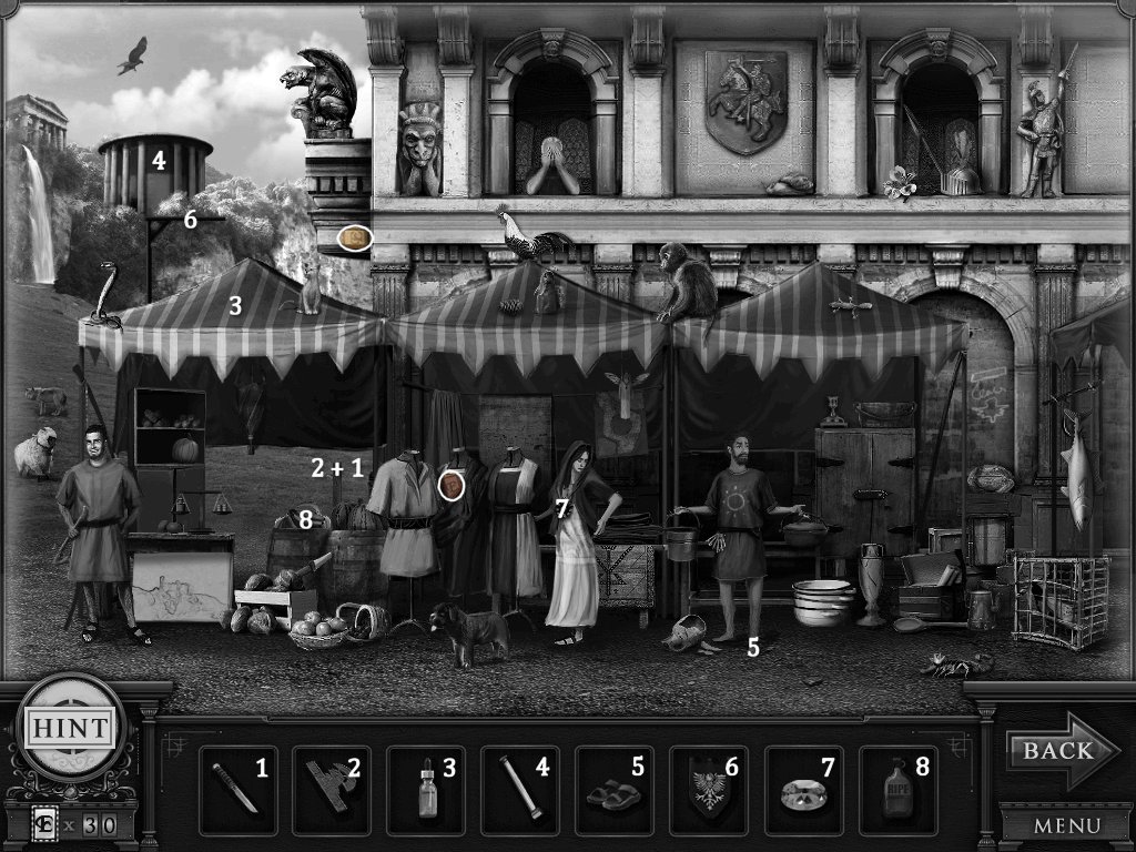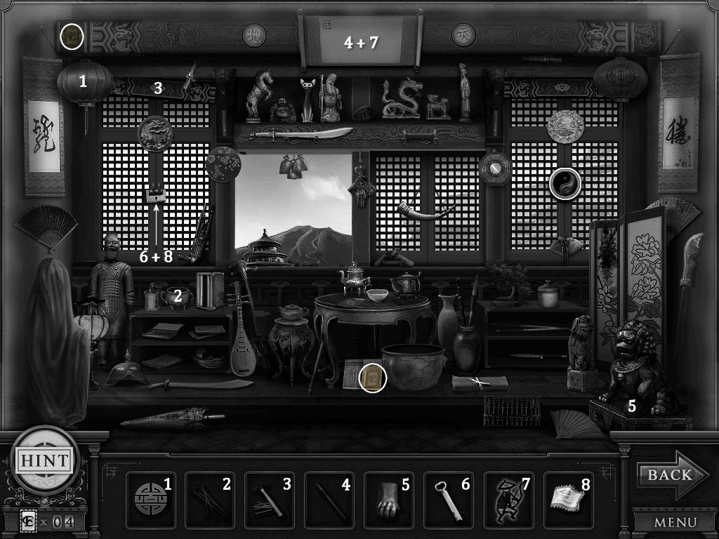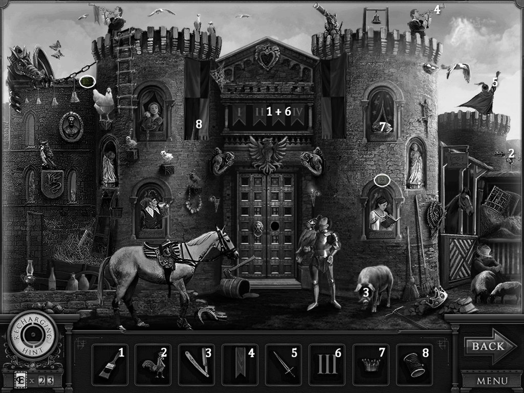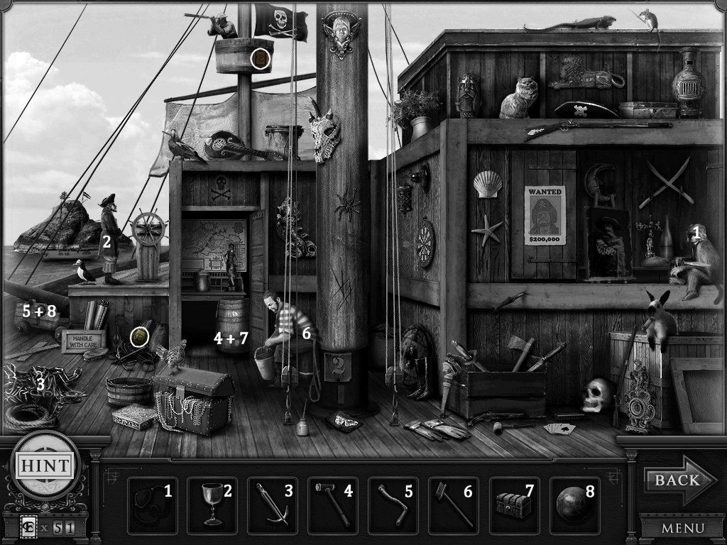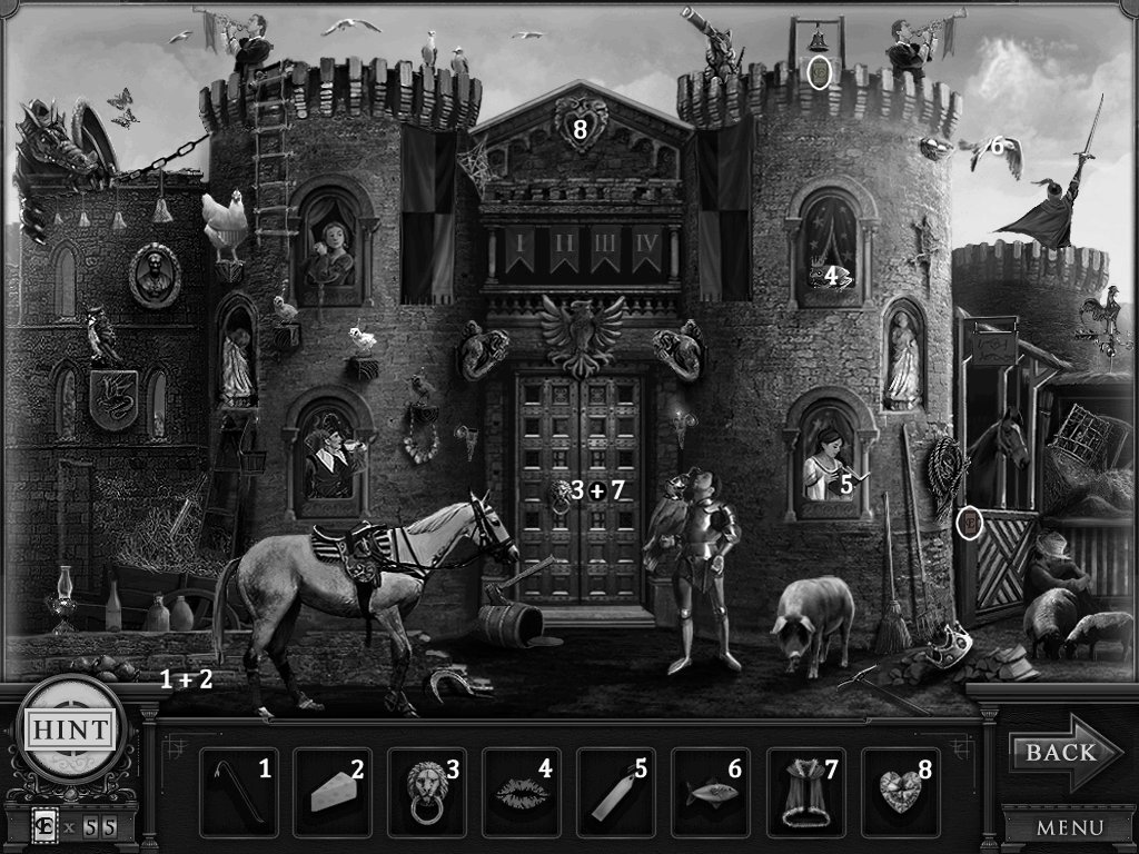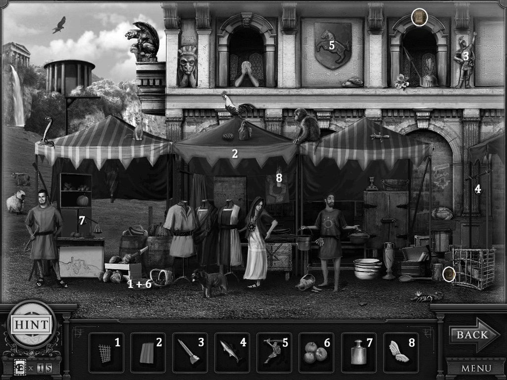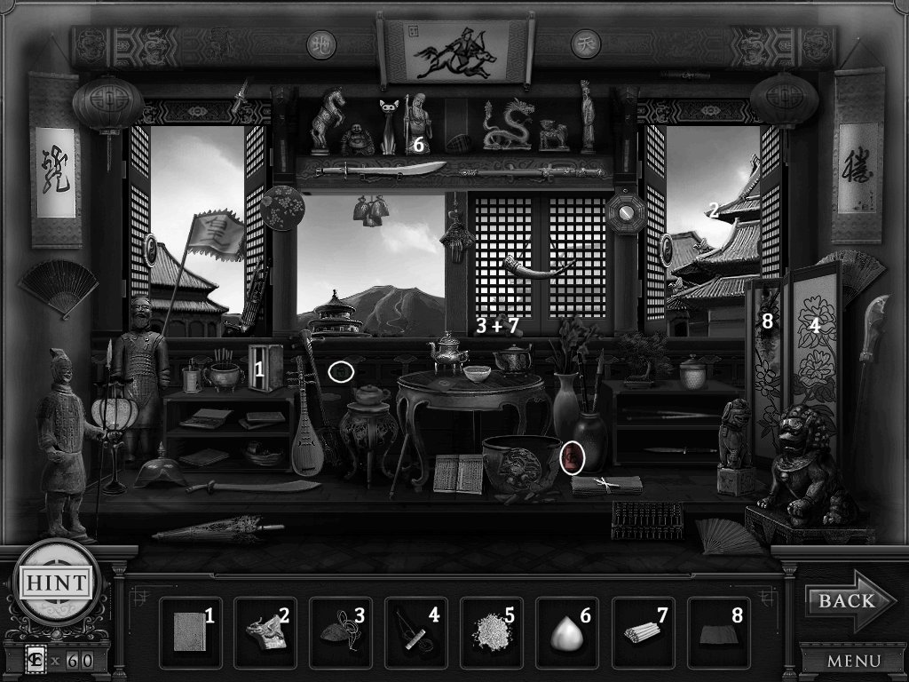 Hidden Objects: The objects aren’t actually hidden in this game. The objective is to match the object in the bar at the bottom to an object in the scene. Example: Spider + Web.