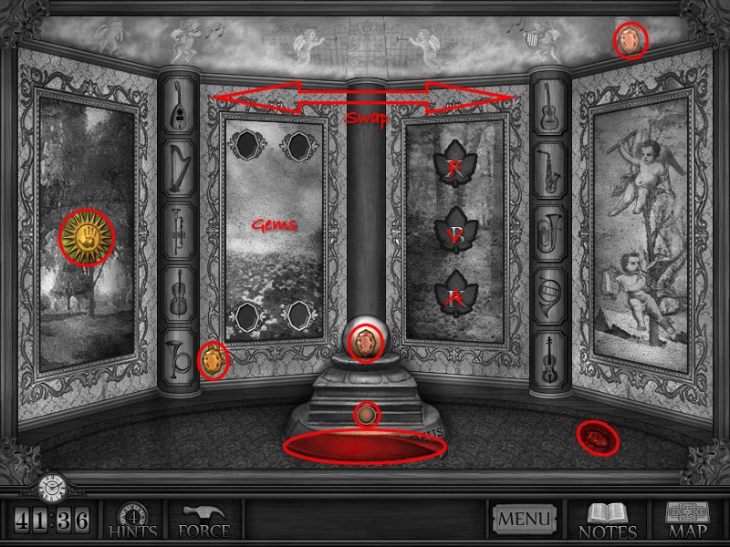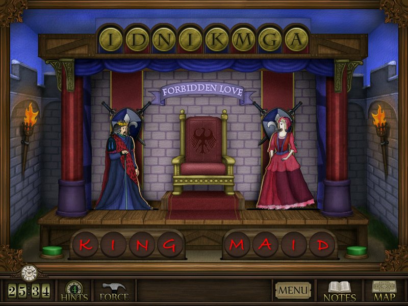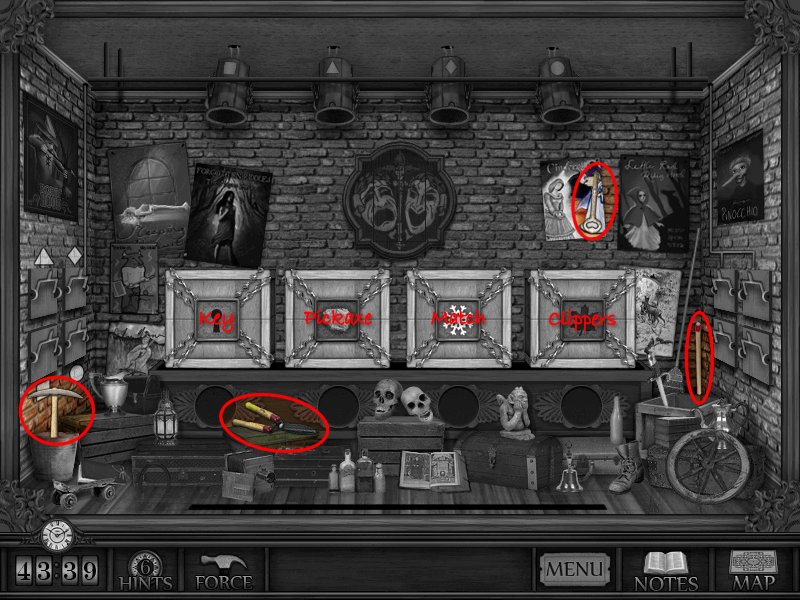 Puzzles: Puzzles can be solved by clicking the hammer or Force button, but at the cost of hints and time. Some puzzles are optional and do not need to be solved to progress through the game but will earn you bonus hints.