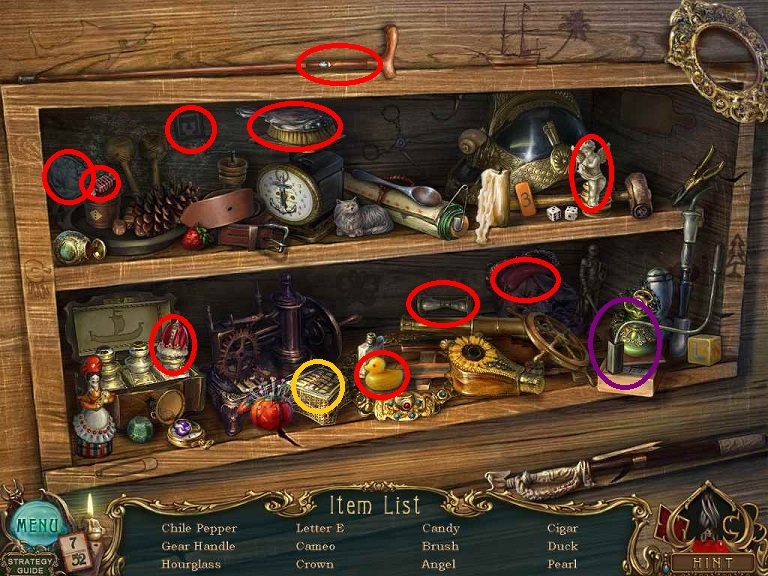 The graphics are clear and the objects are not impossible to find. The overclicking penalty will slow you down but you have to really overclick to get it. In addition to the standard working your way through to the end, you will need to pick up a deck of cards that has been interspersed through all of the scenes in the game. All of the game controls are completely standard. A journal is included but does not give you too many hints for your next objective.