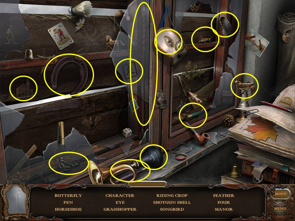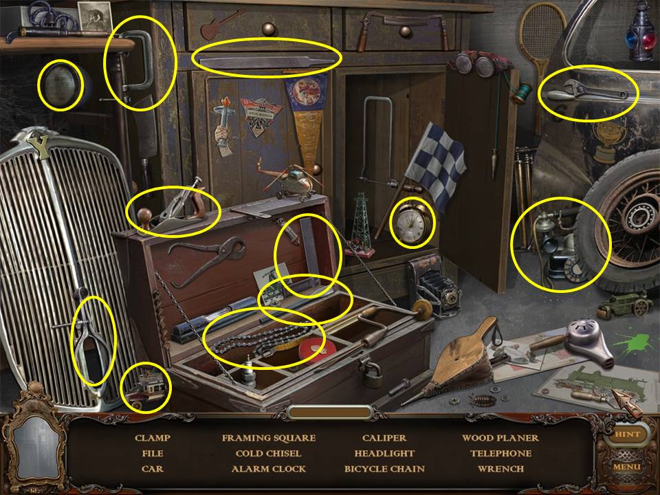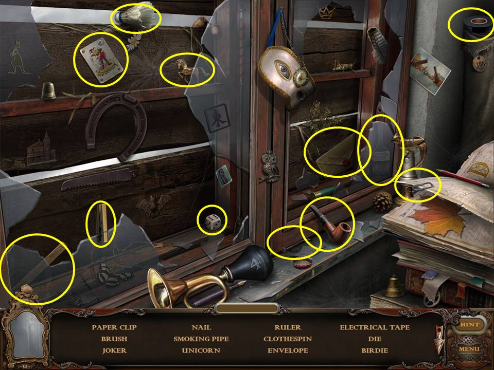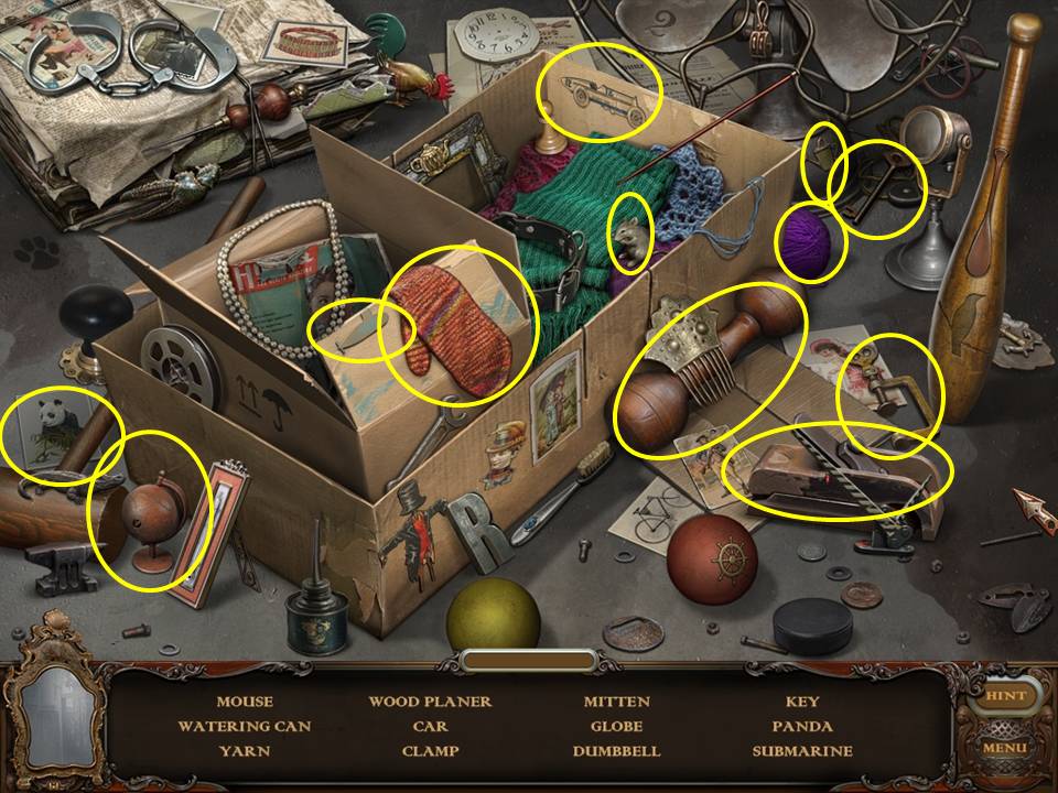 Within the Hidden Object Area, locate the objects requested.