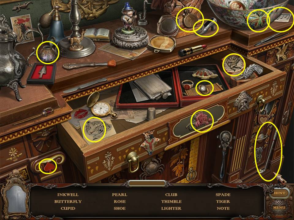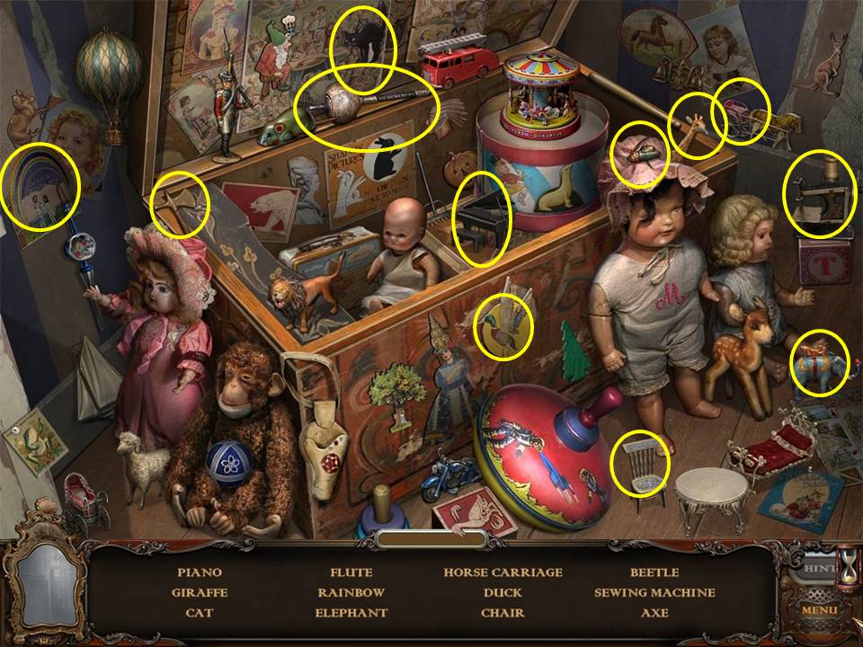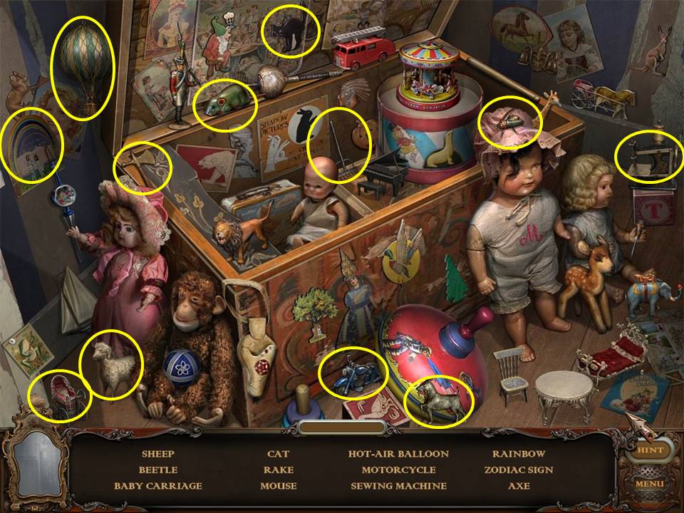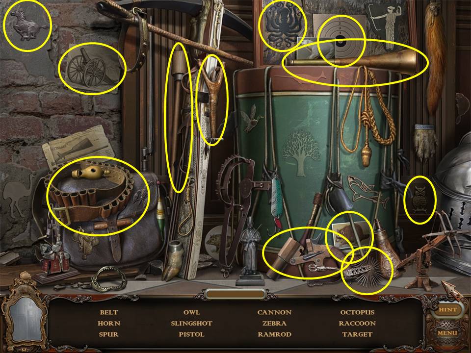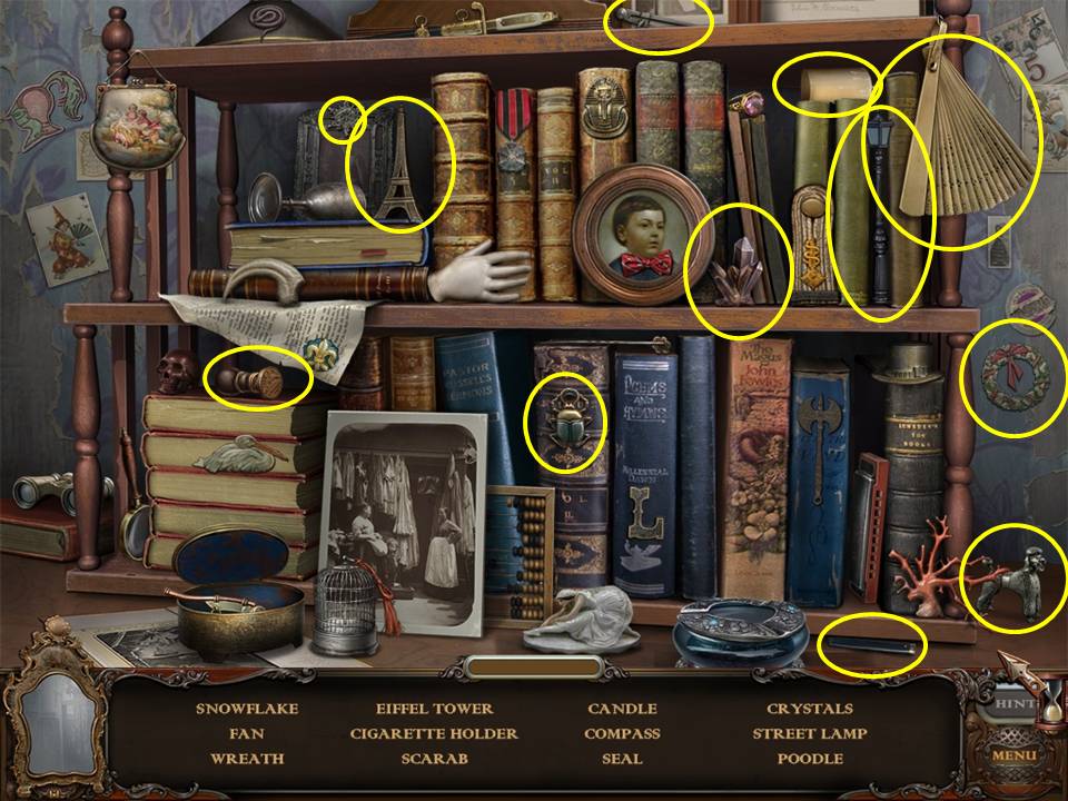 Hidden Object Areas sparkle. Zoom into these sparkling areas to initiate that activity. Both Hidden Objects and some puzzles within the game are random. Use this game guide as an example only.