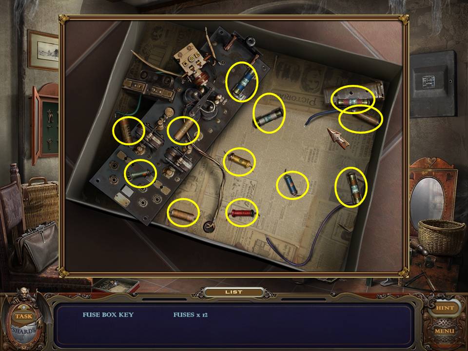Click on the mirror under the fusebox to initiate the next task.