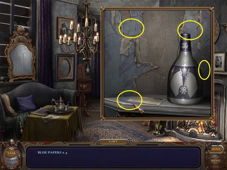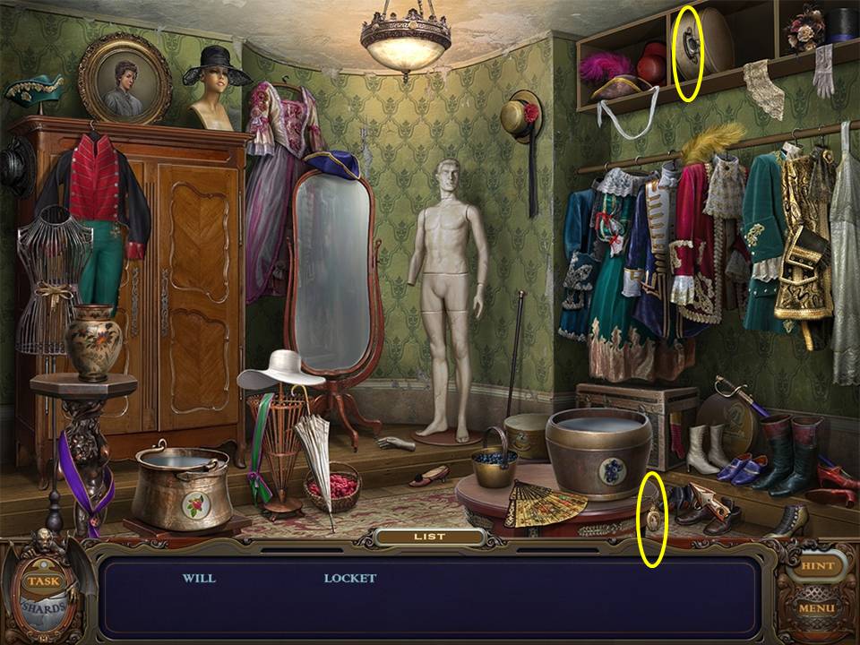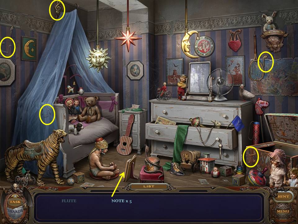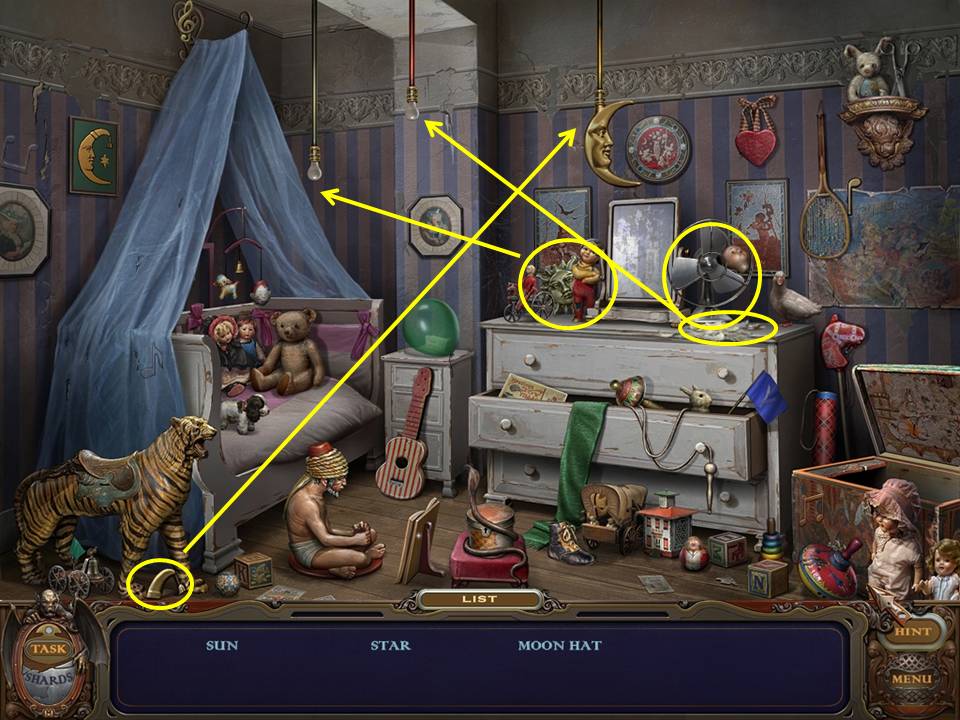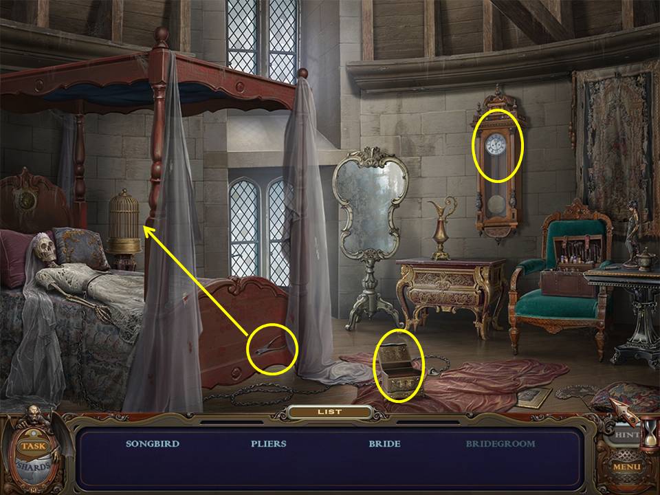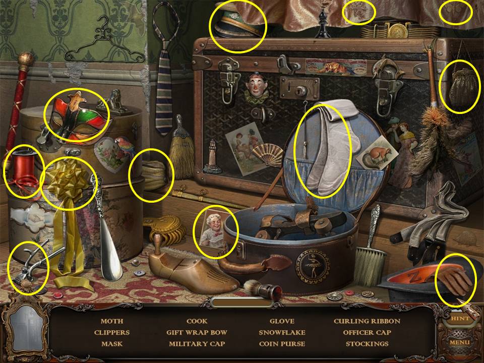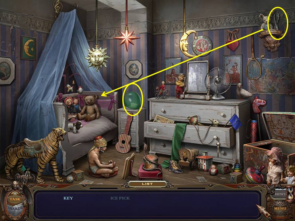 Return to the Bedroom and play the Hidden Object Area again.