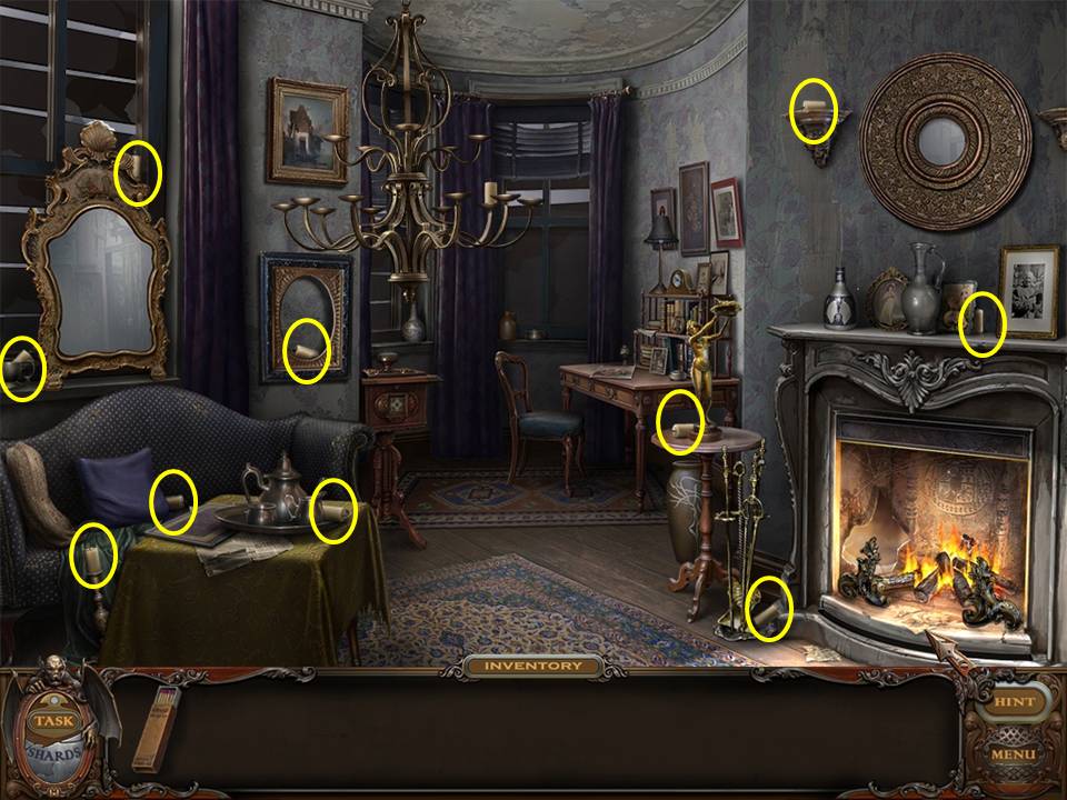Locate 14 CANDLES. Ten are in the Living Room scene.