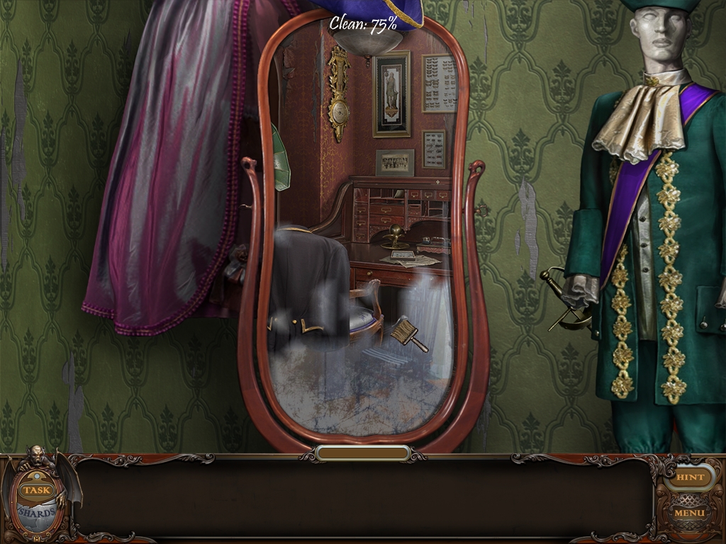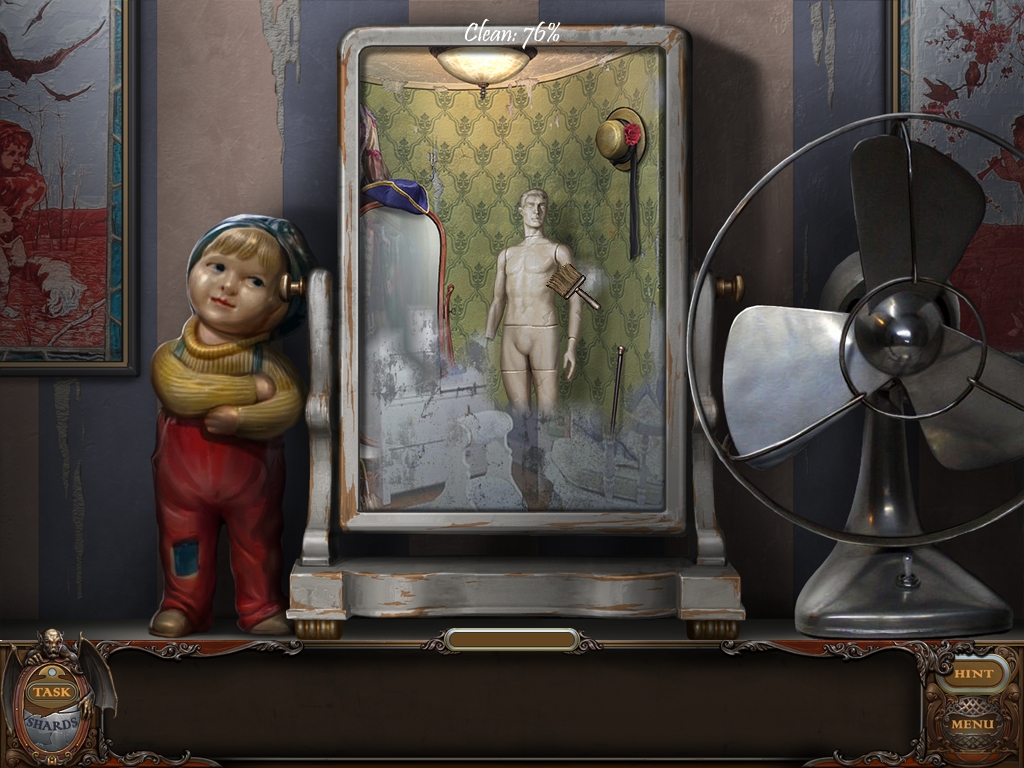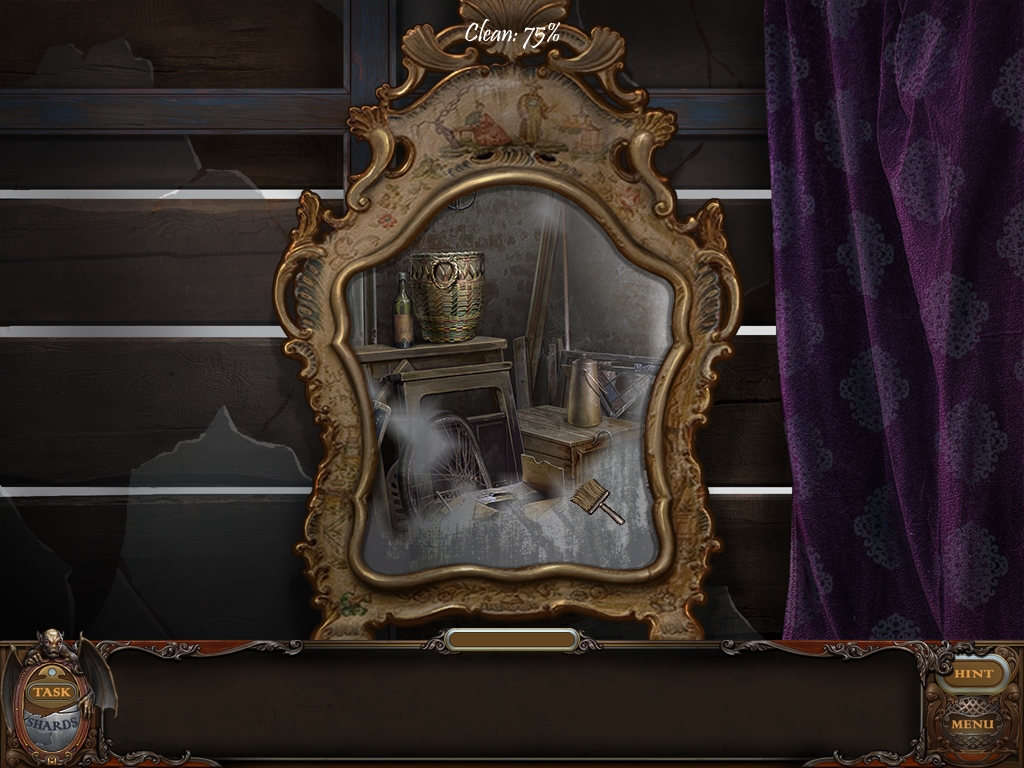 Left-click and hold when you brush the mirror to remove all the dust. You must get the mirror totally clean. Your progress percentage is indicated on the top frame of the mirror.