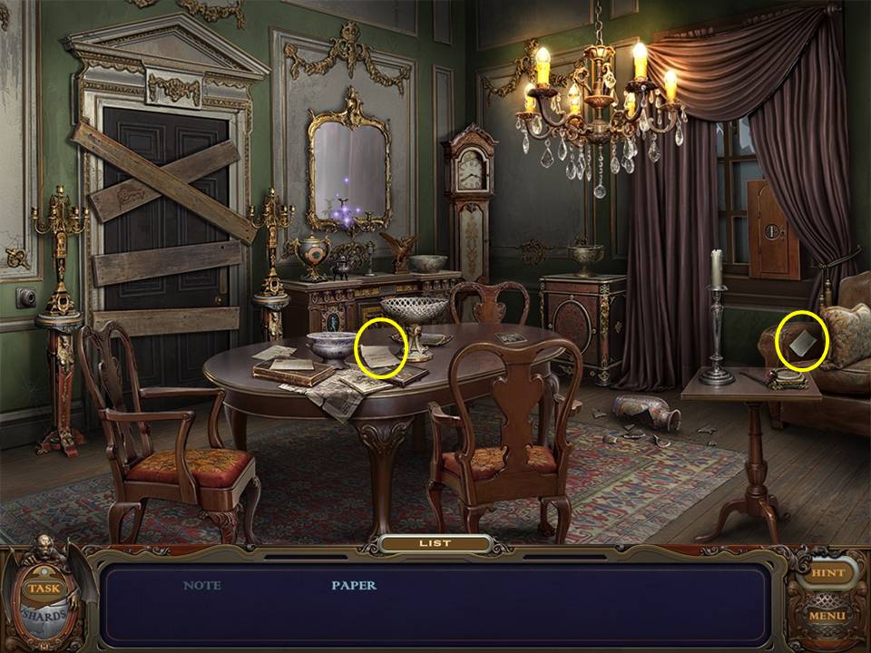 Exit the note screen by clicking outside the inset. A SHARD has now appeared within the safe. Take the SHARD.