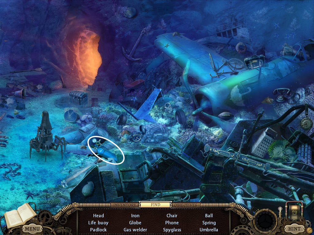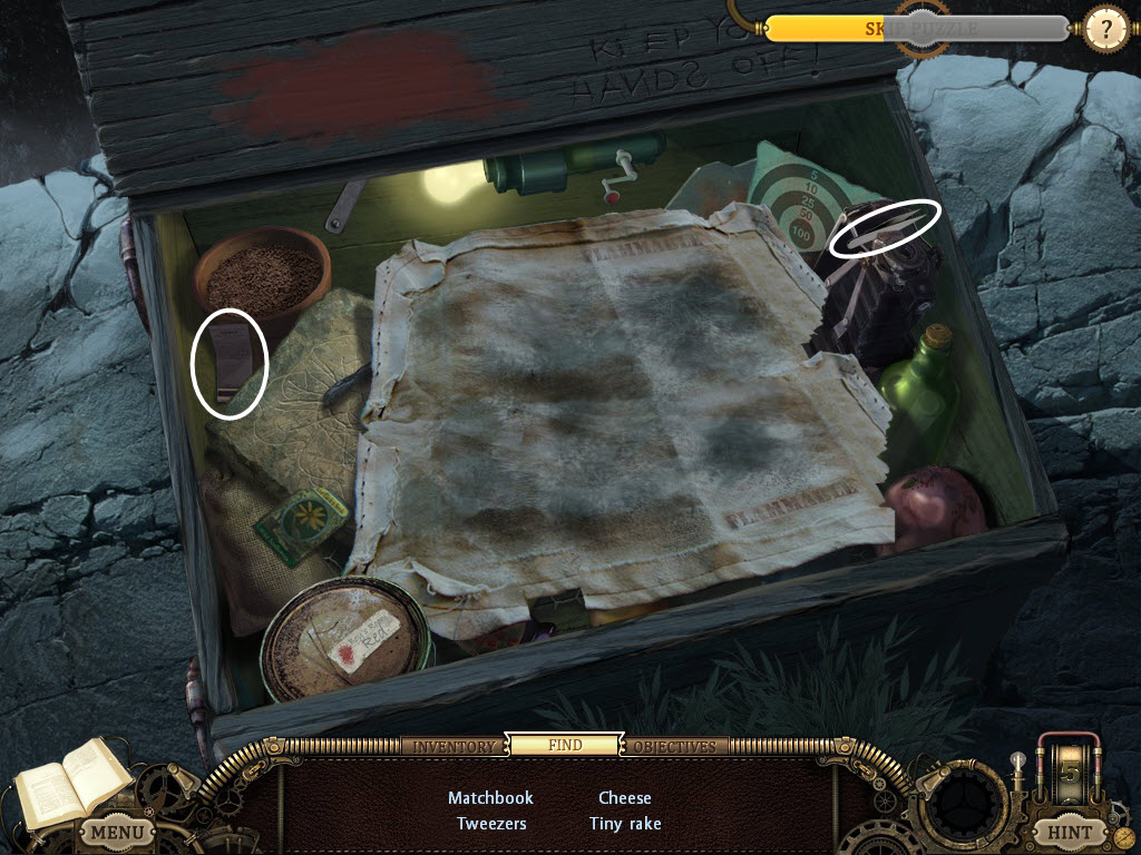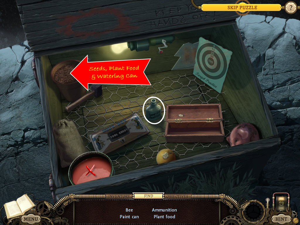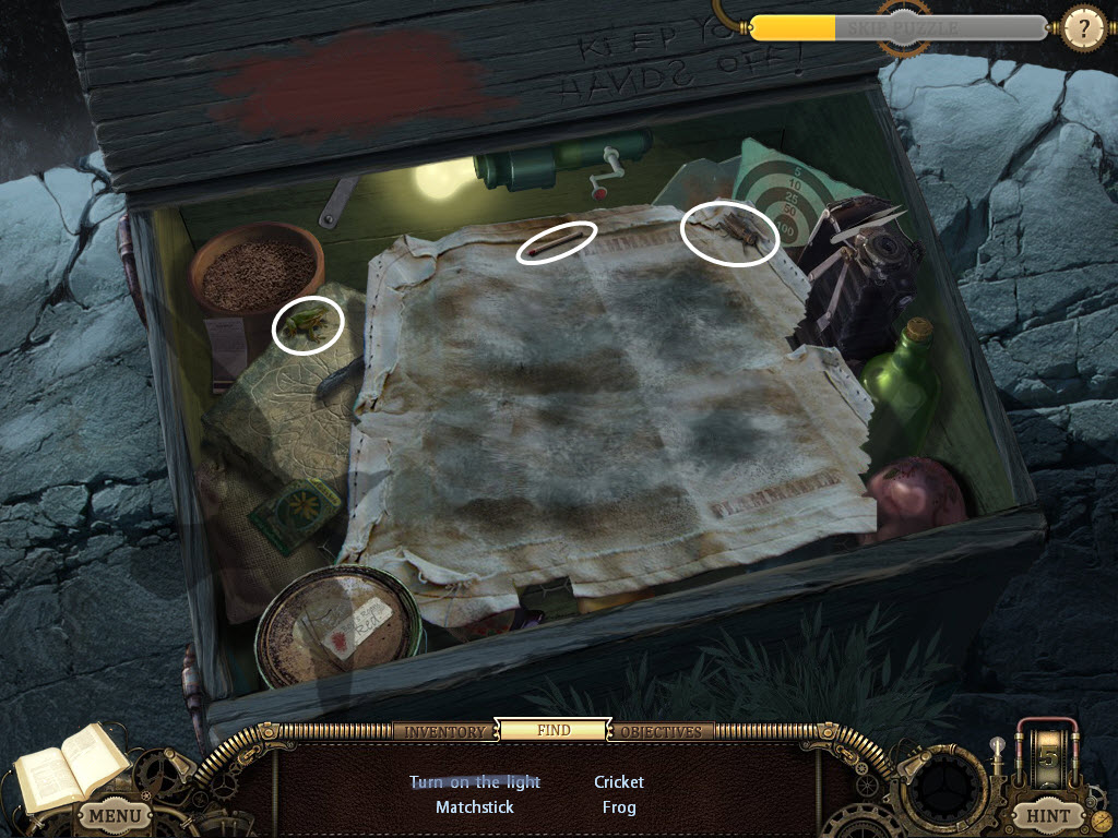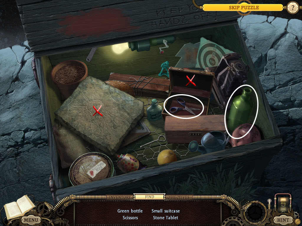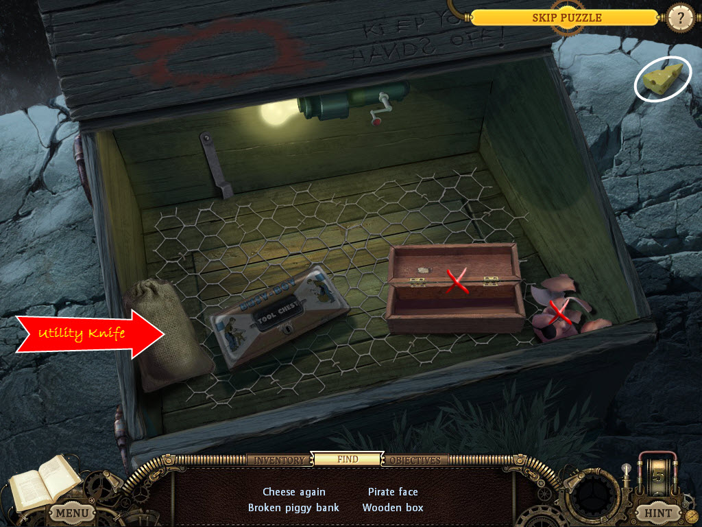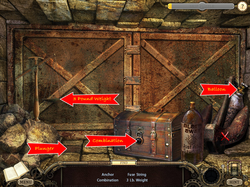- Find - This list the objects you need to find in hidden object mode. You click an item in the list to see a silhouette.