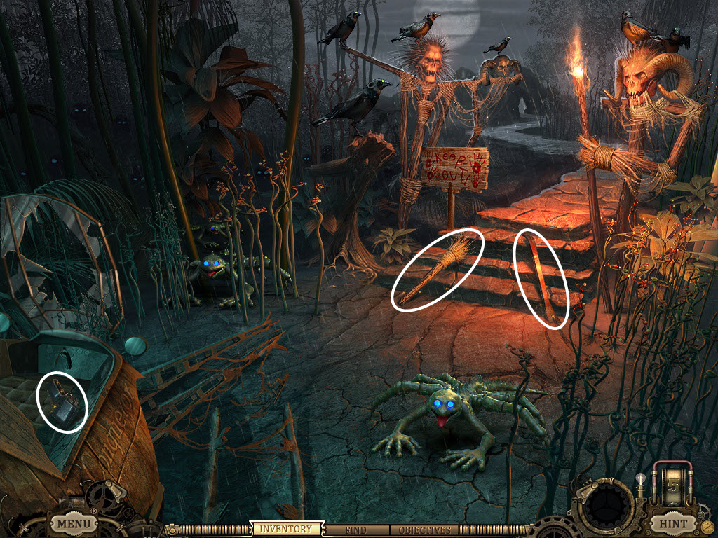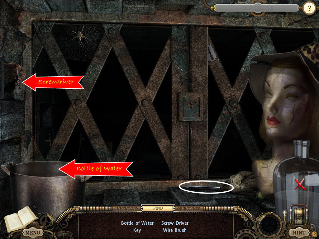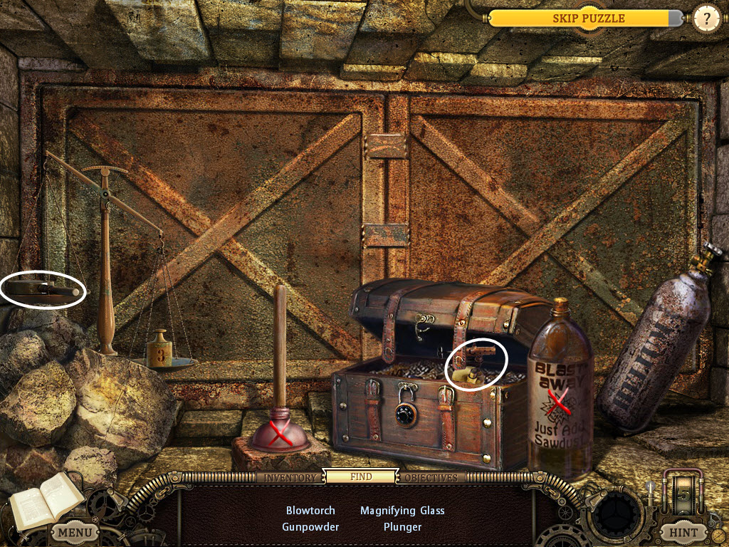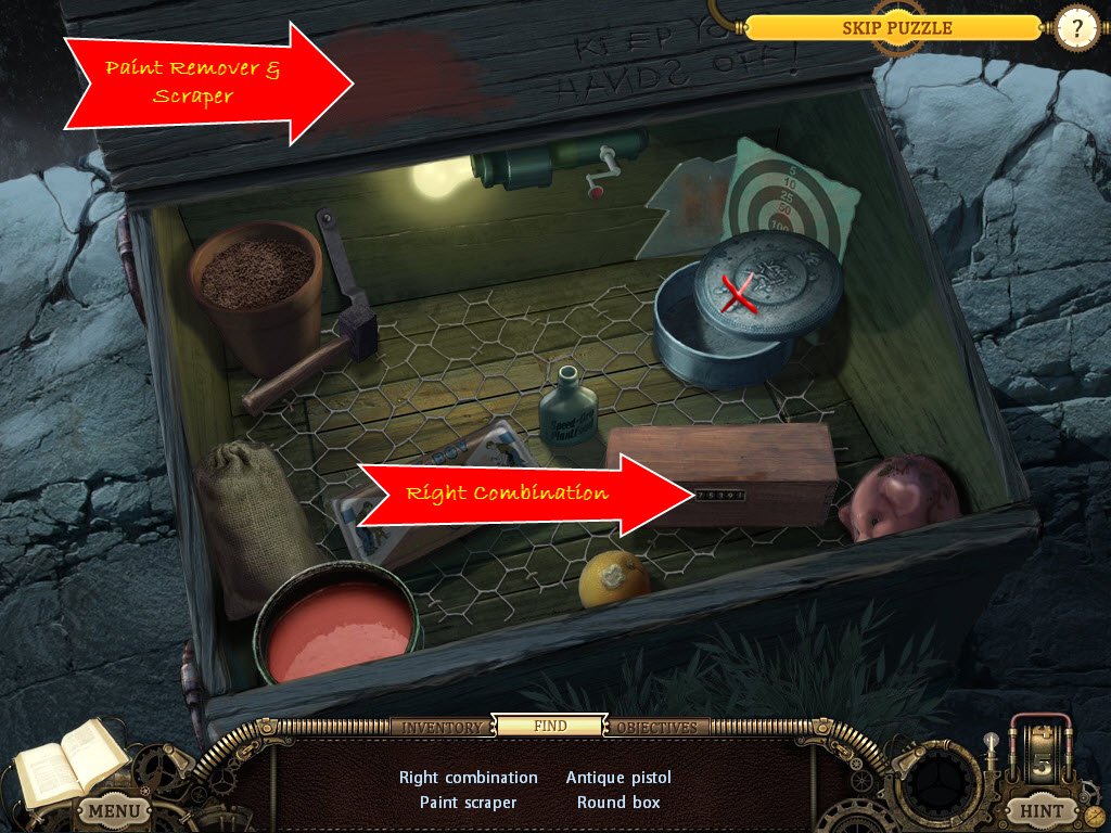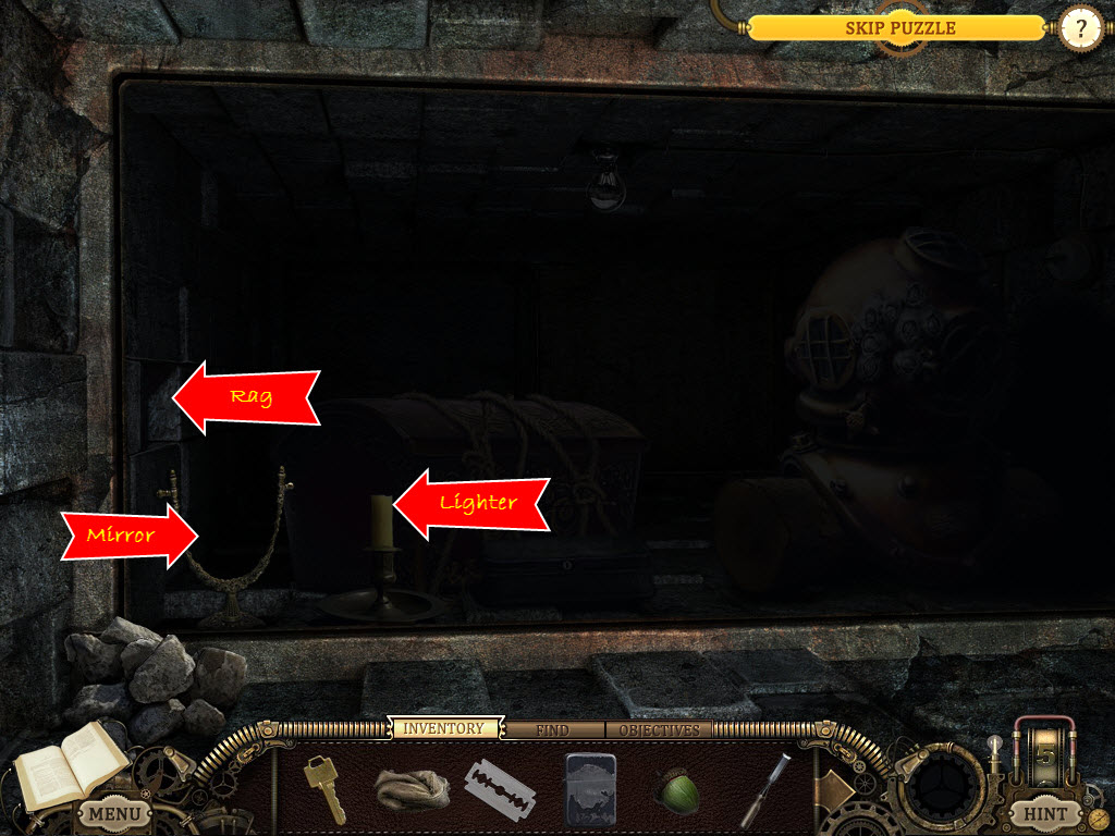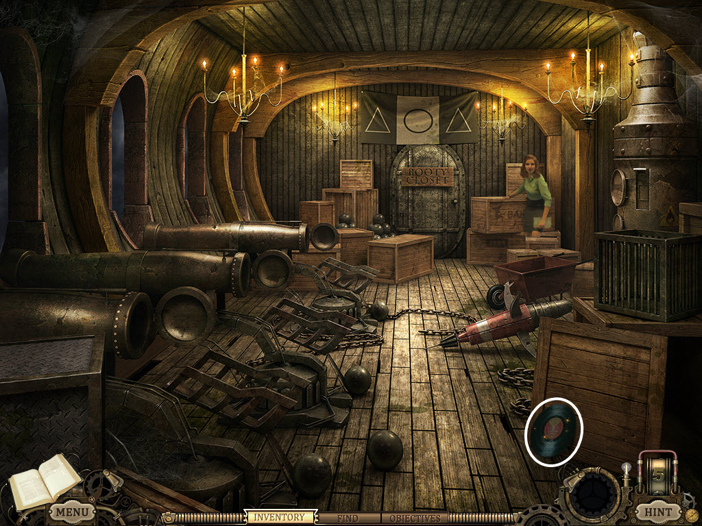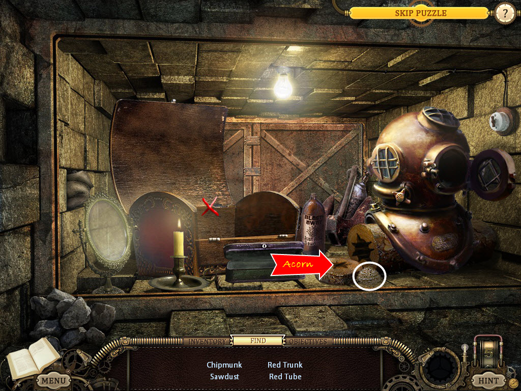 - Find - This list the objects you need to find in hidden object mode. You click an item in the list to see a silhouette.