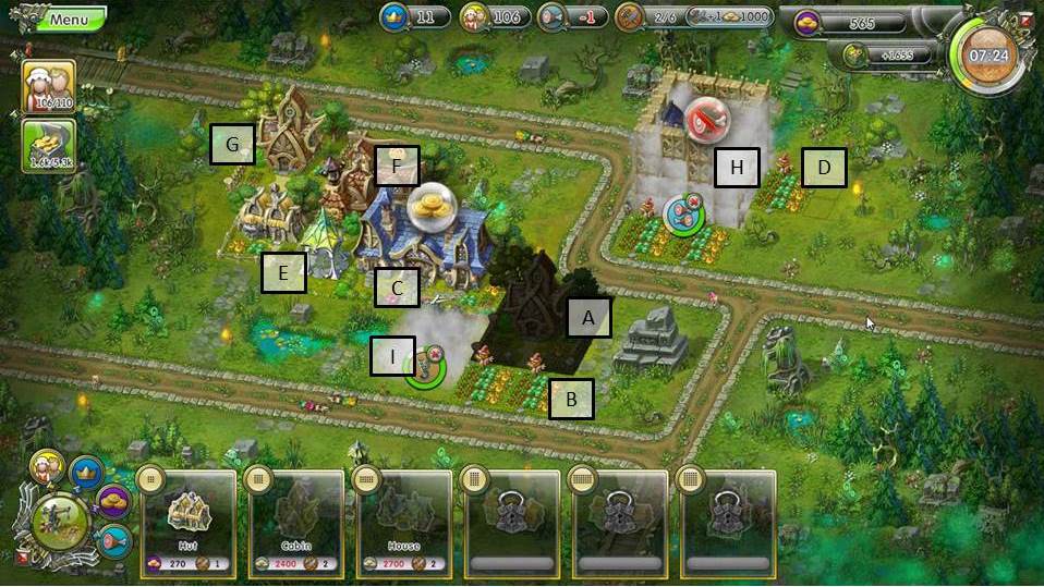 - Build a garden to the right of the tavern and upgrade fully (D)