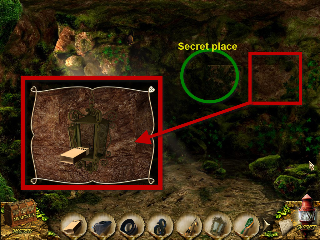 * Click on secret hiding place, use brush to clean off moss