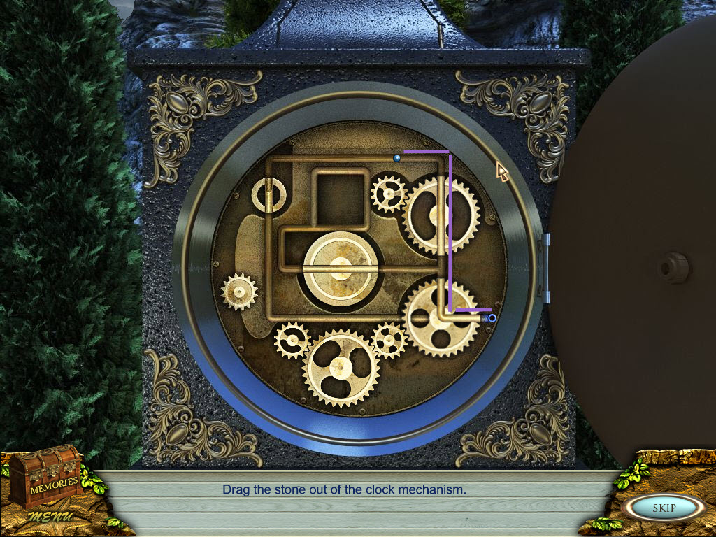 * Drag the stone out of the clock mechanism (use the mouse to drag the blue stone along the tubes to move the gears into place)