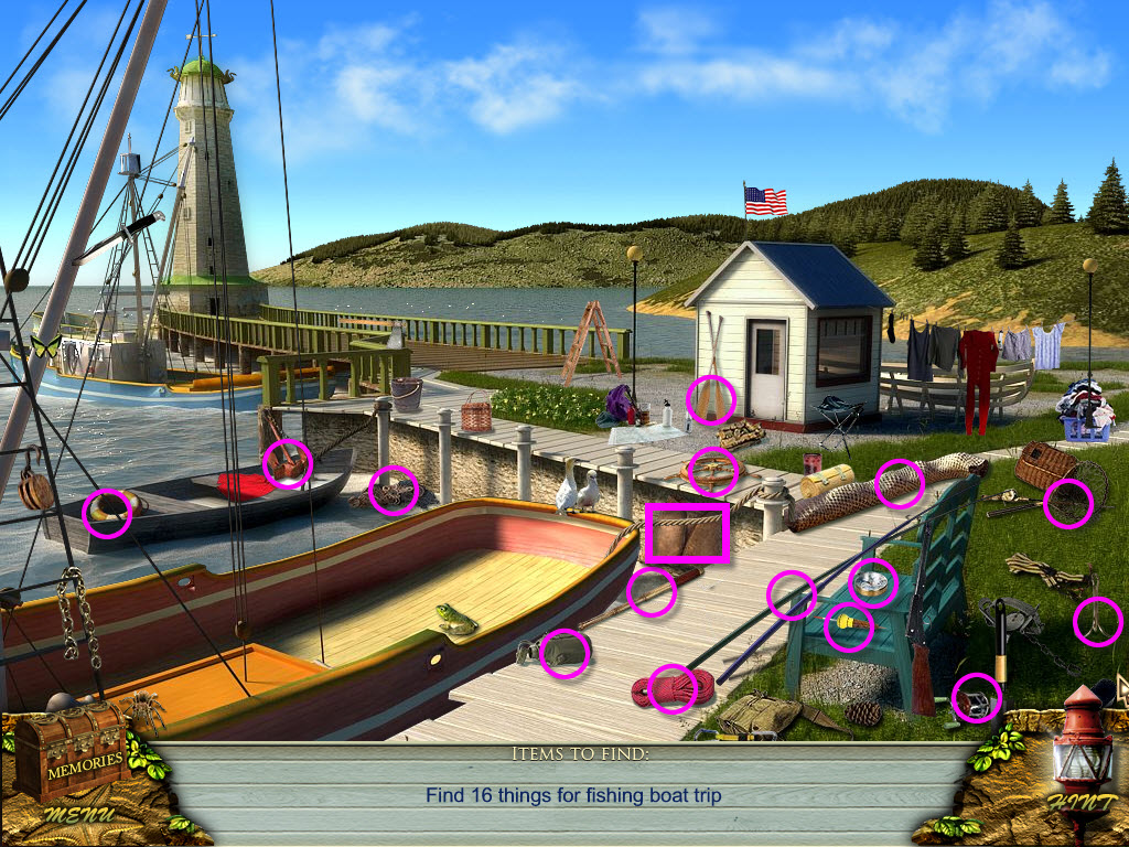 * Find 16 fishing trip items