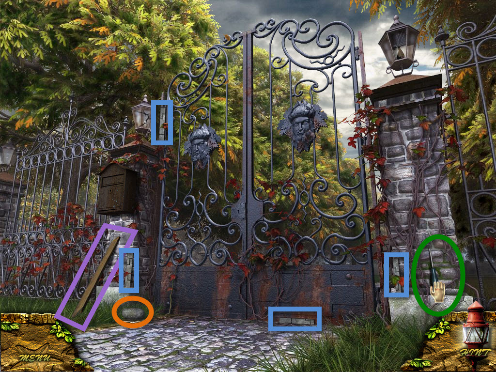 * Click on gate to zoom in on lock. From inventory, use screwdriver on screws