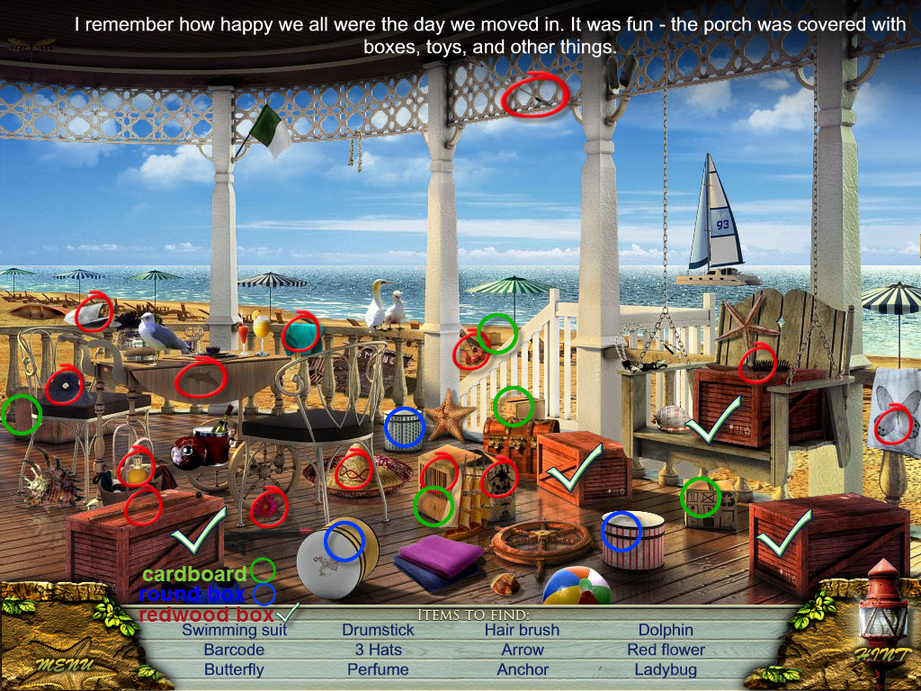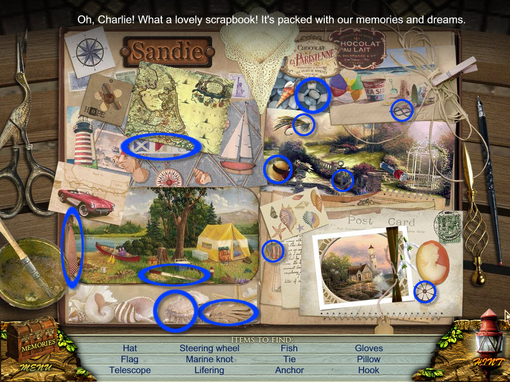 Overview: The story starts with Sandra receiving a letter from her father, the curious thing about this is he passed away a month ago. It explains to her to go to their summer cottage at the beach to clear out things before deciding to sell it or not. The cottage apparently holds good and sad memories for the Sandra. Help her find the clues to remember the past and solve this hidden object puzzle to fulfill her fathers last wishes.