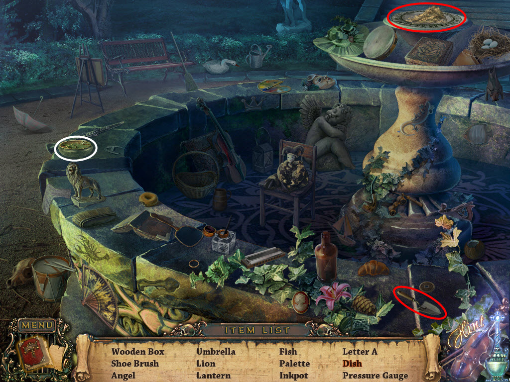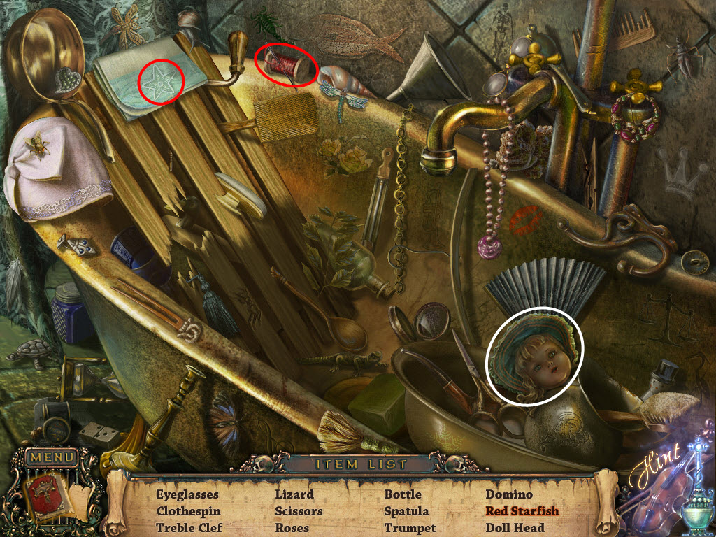 Hidden Object Scenes: Items listed in Red mean another action must be performed in order to obtain the item.