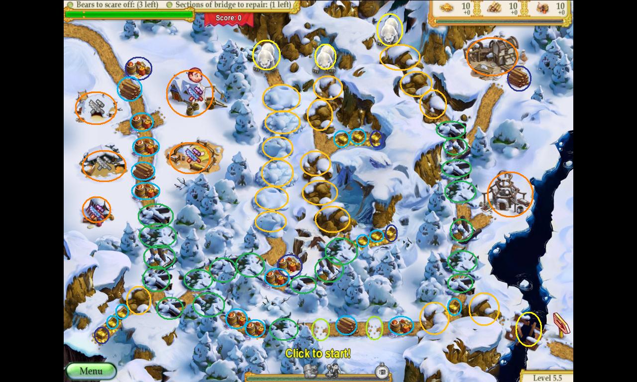 14. Use ½ cost bonus to clear snow drift on the path to the bear at the bottom right