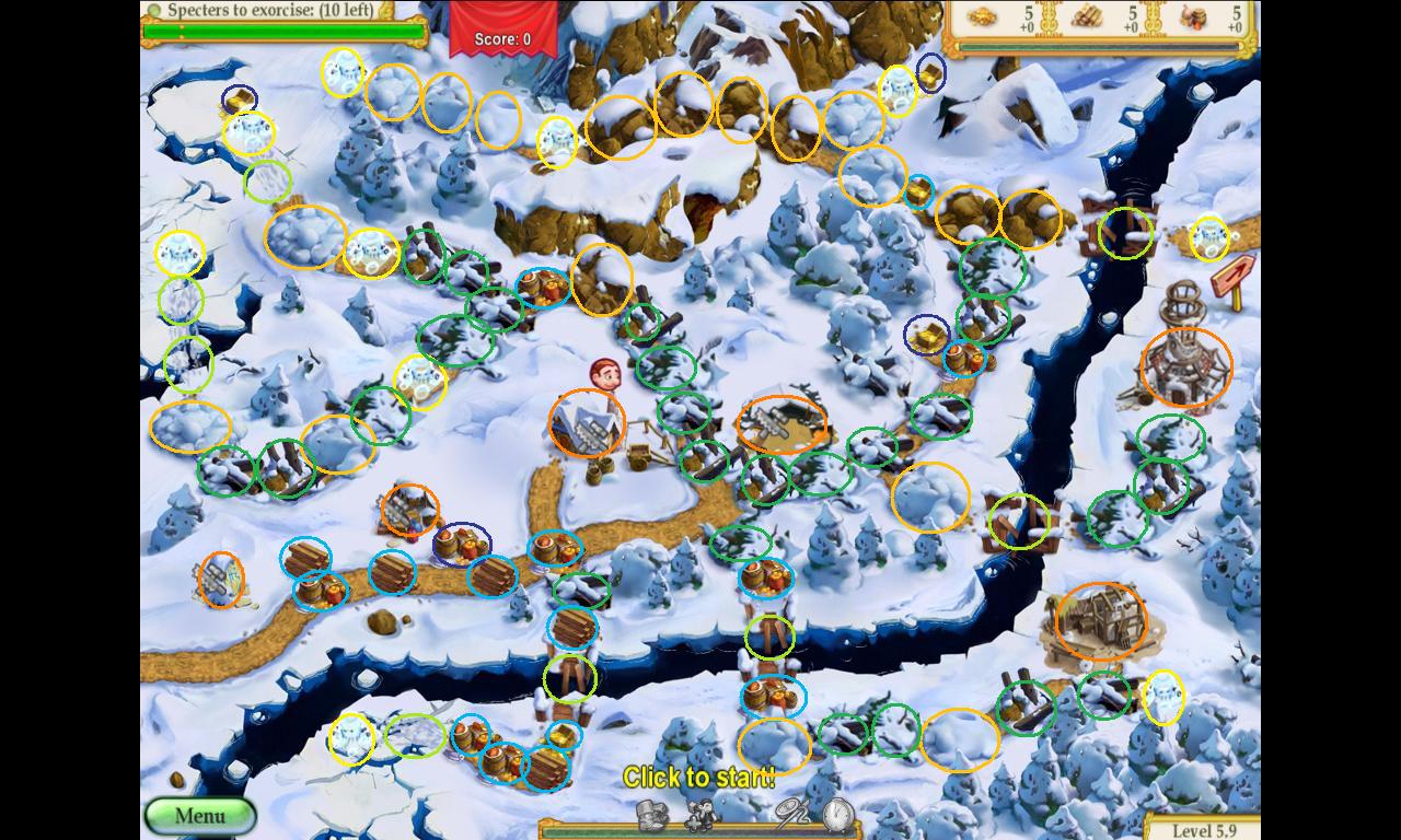 9. Use ½ cost bonus to clear the snow drifts on the lower left for the food and on the right down at the bottom blocking gold