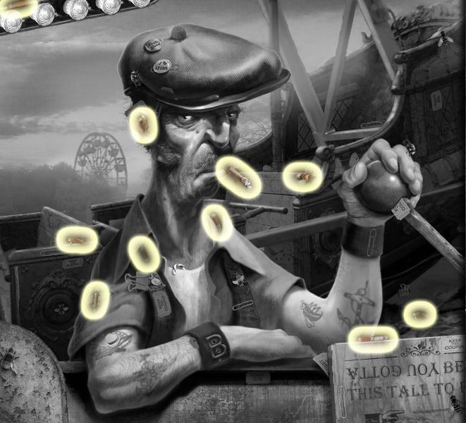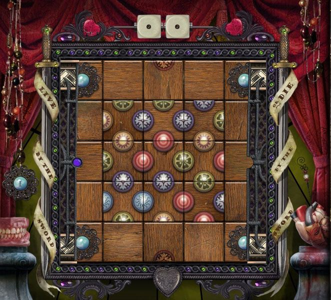 Art’s Puzzle: Second easiest puzzle in the game. Left lever turns the wheels to the left, right lever turns it to the right. The star button switches between color wheels. The best strategy: move all the red ones from the blue wheel to the green, then to red. Click here for a video. Twyla’s Puzzle: Peg puzzles are notoriously frustrating, and this is no different. Aim your mouse on the edges of the pegs and you should be OK. Just match the pegs to whatever color is spinning. At the end, put the golden teeth in the mouth. Click here for a video. |