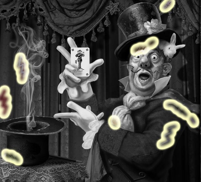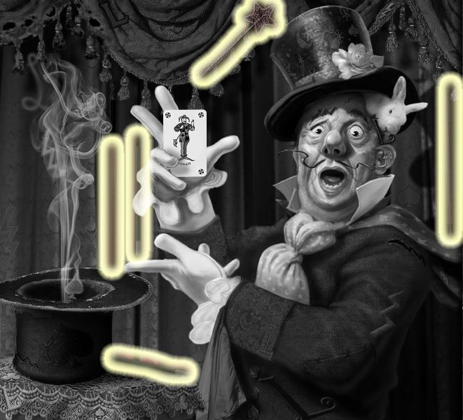 | Larry’s Puzzle: pick the corret bunny out of the hat 3 times, then rearrange the cards on the sides in ascending order from top to bottom in the same suits. Click here for a video. | |||