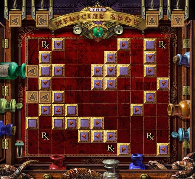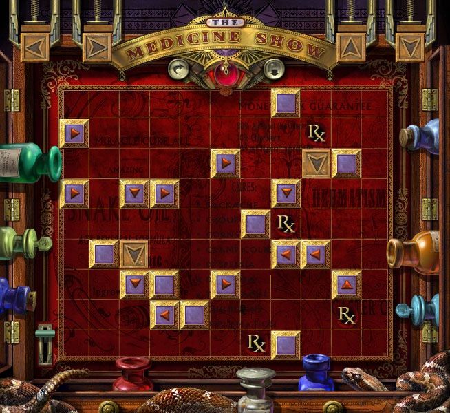 Armado’s Puzzle: Technically, the goal is to get colored balls from the chute to fall into the same color hat, and it takes skill to set up the pegs. Realistically, the best way to solve it is to randomly click close to the hat it’s supposed to fall into and do it fast. It’s not how many balls you drop that makes the chute move; it’s a timer. Tabitha’s Puzzle: This is a “light the board” puzzle in disguise. When you click on one tile, it’ll flip it as well as the four around it. The image you want to match is the one that’s blinking along the side. Click here for a video. Franco’s Puzzle: This has got to be the second most annoying one. It’s cute, but the key is timing. You want to watch the though bubble of the man, then match it with the item in the woman’s hand, click on it so she’ll throw it, then count to three and click on the man so his tongue will snatch the item. Repeat in the opposite way for the woman until the heart in the back is full. Click here for a video Dr. Goodwill’s Puzzle: You want to use shoot the stoppers of corresponding colors into the bottles. The “Rx” holes teleports, the blank tile destroys the stopper, and the arrows redirects them. Here are the solutions: Red, Amber, Blue, and Green. |