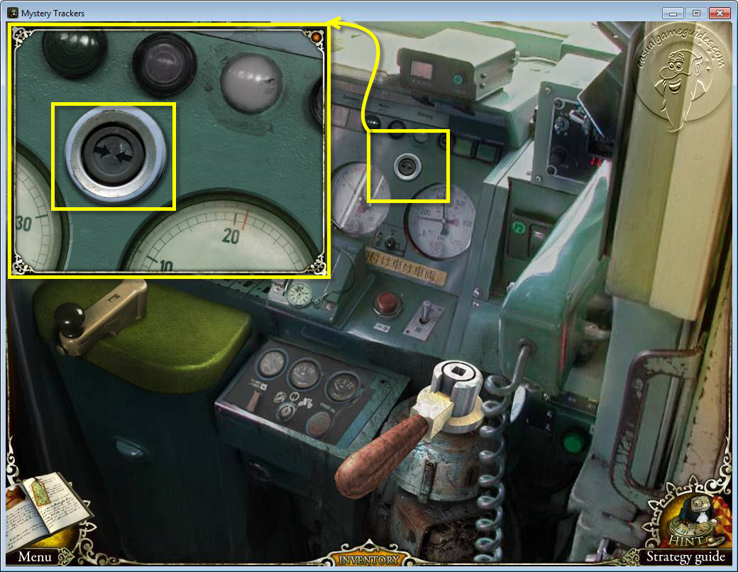 - Once you have solved the puzzle, click to take the SCREWDRIVER and the POSTCARD.