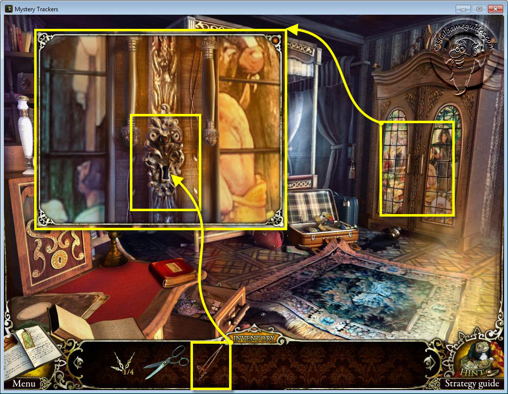 - Once you complete the puzzle, click on the sparkles to access a hidden object area.