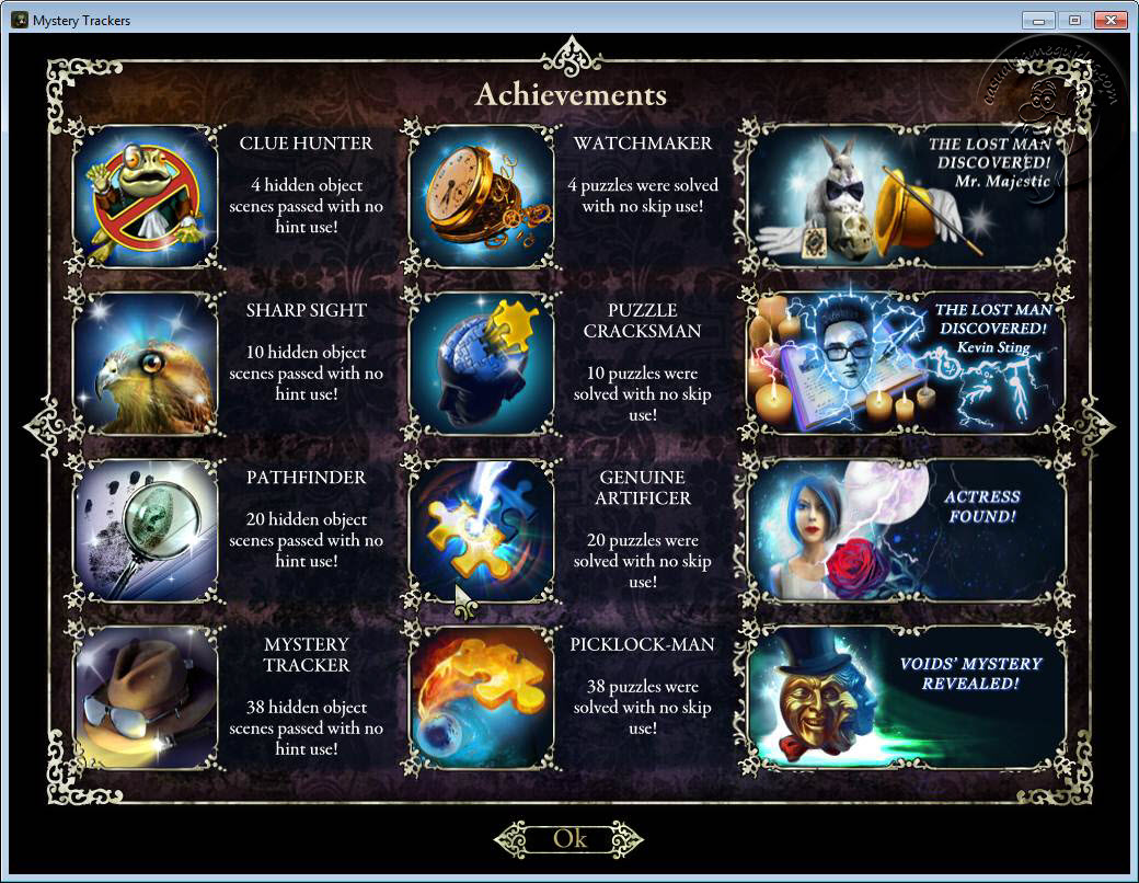 Mystery Trackers: The Void Walkthrough includes more than 30 videos of detailed solutions to puzzles, over 200 screenshots, locations for all hidden objects, and step-by-step instructions on how to beat the game. Mystery Trackers: The Void is a Hidden Object Adventure Game with you as the detective in charge of discovering what is going on at the mysterious Void Mansion. Can you solve the mystery and escape the terrors lurking at the Void Mansion?