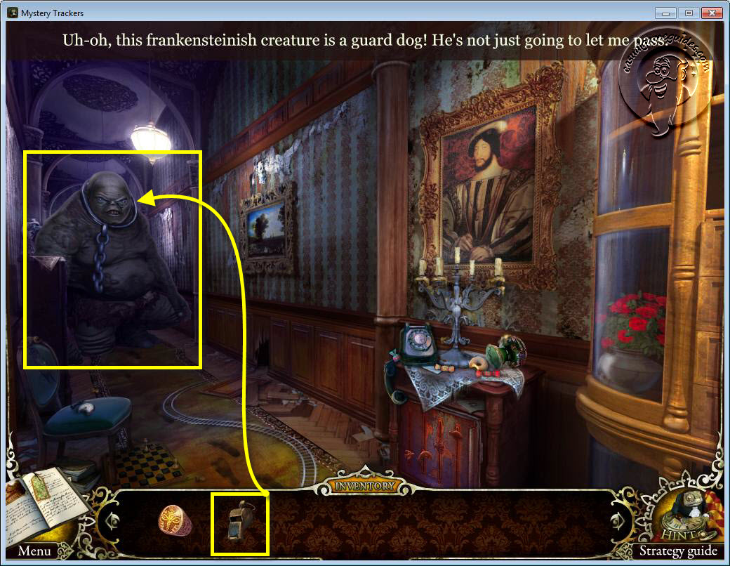- Use the WHISTLE on the monster in the hall, and he will go through the wall.