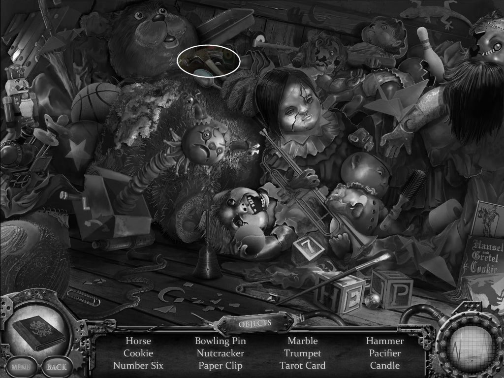 Hidden Objects: These vary by player. The only items I will circle are those that go into your inventory.