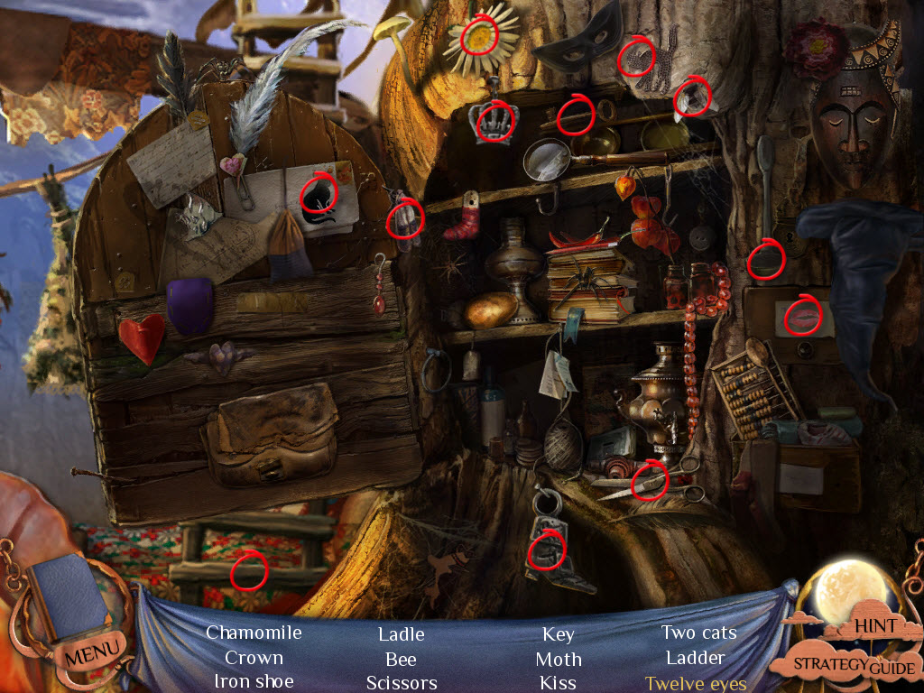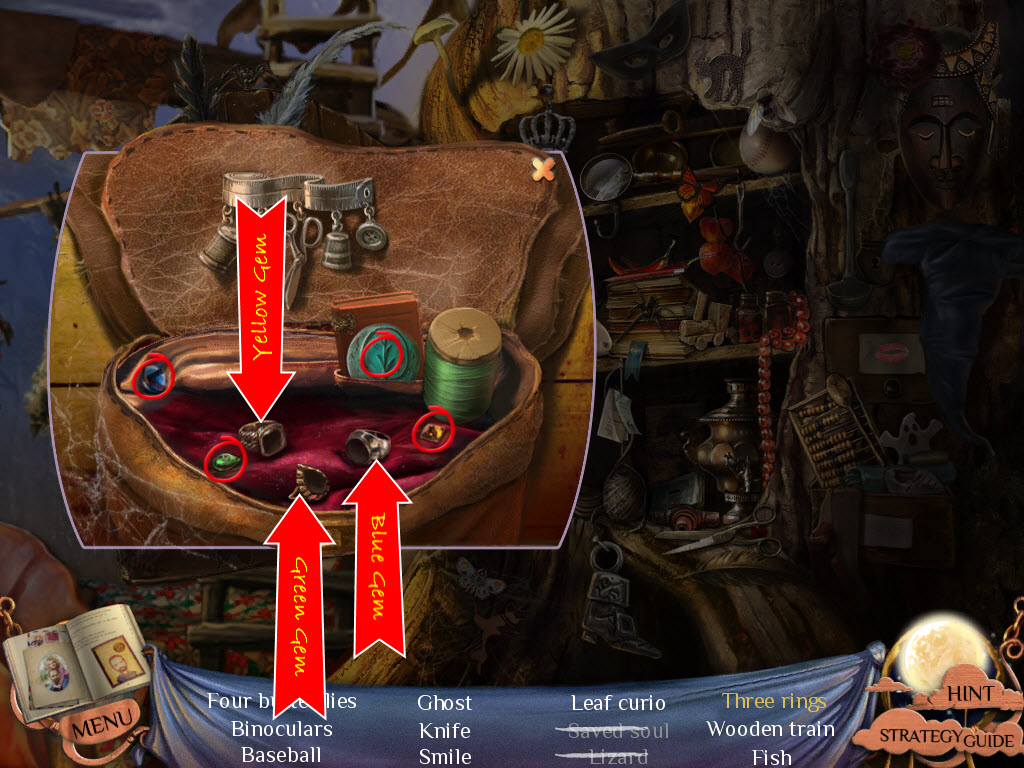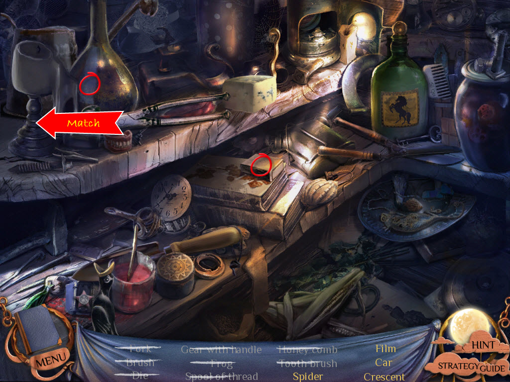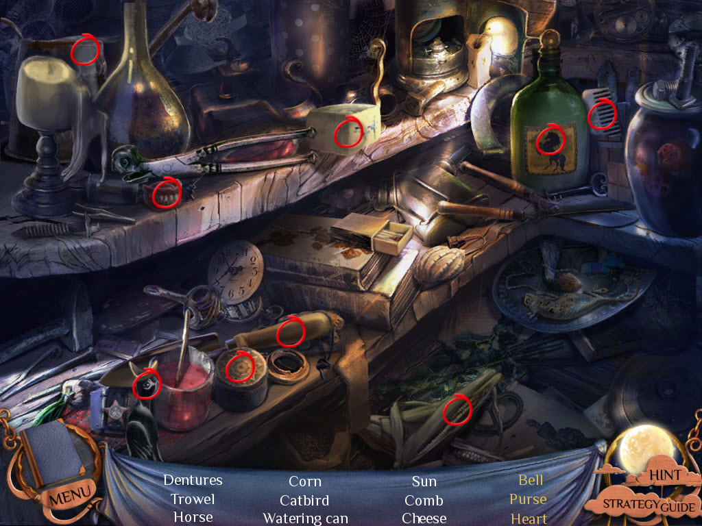 Hidden Objects: Items in yellow mean you need to interact with something else in order to locate them.