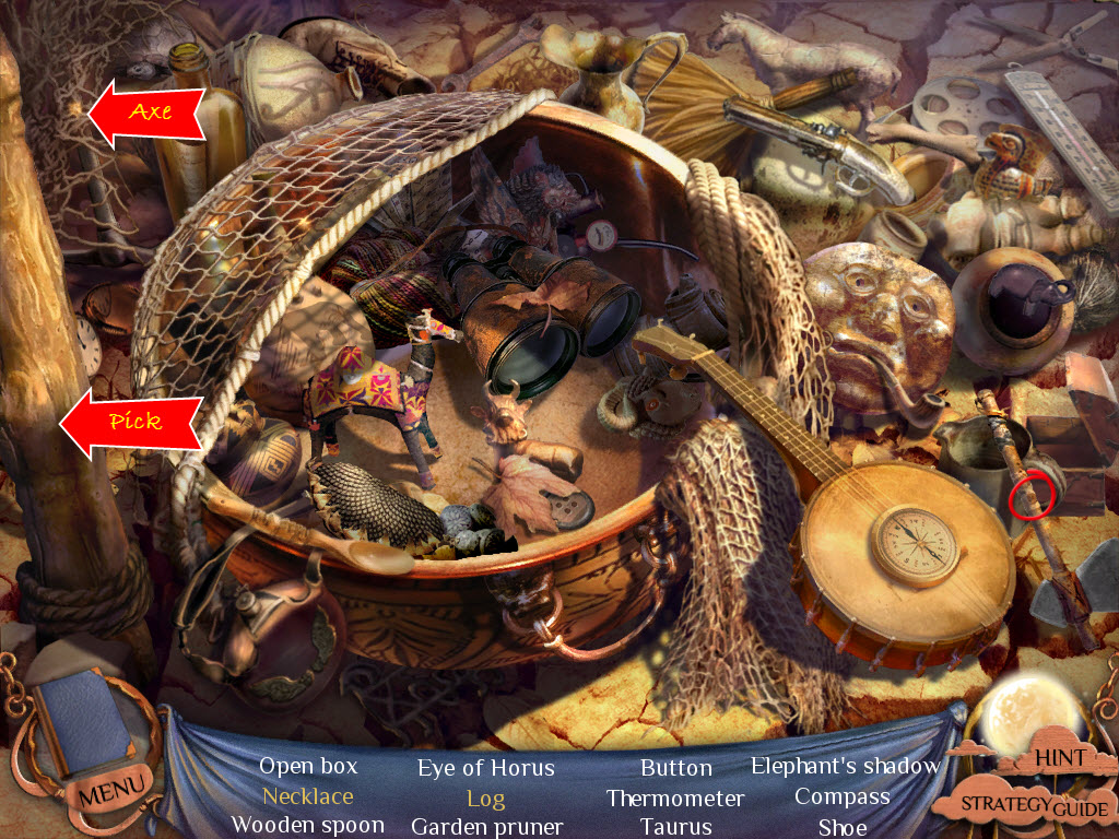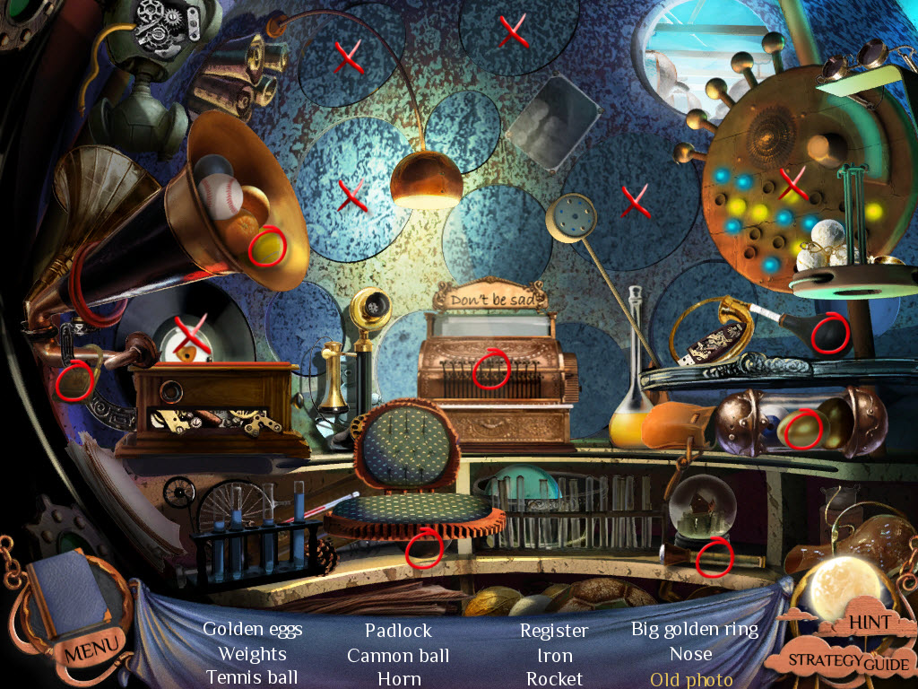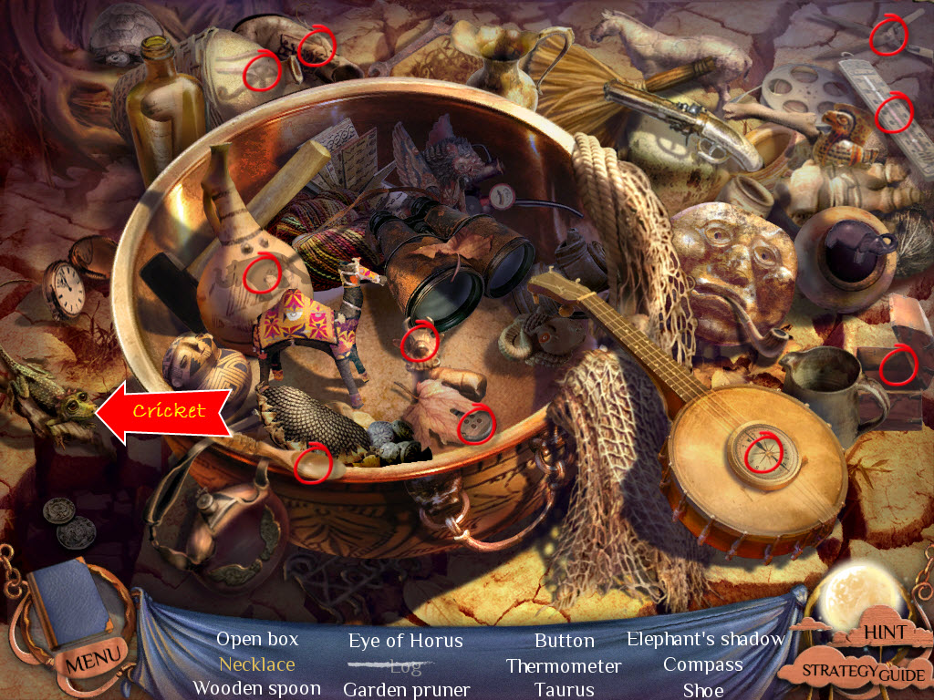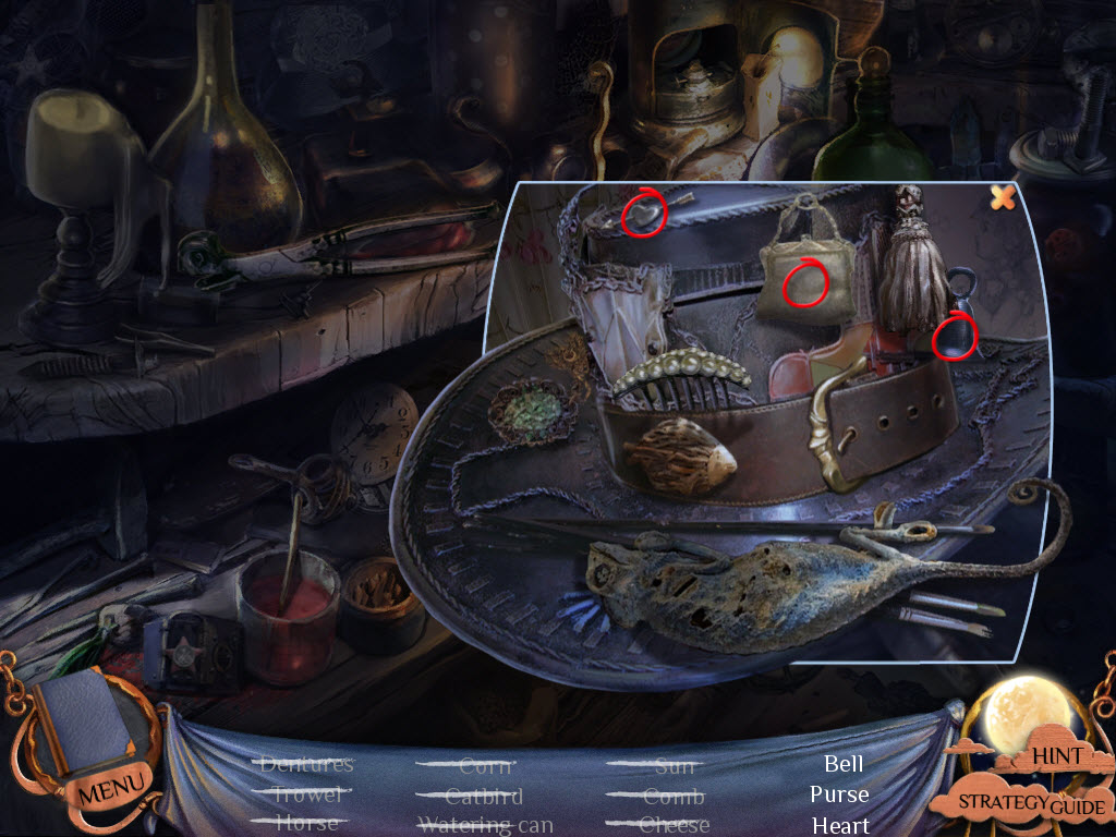 Hidden Objects: Items in yellow mean you need to interact with something else in order to locate them.