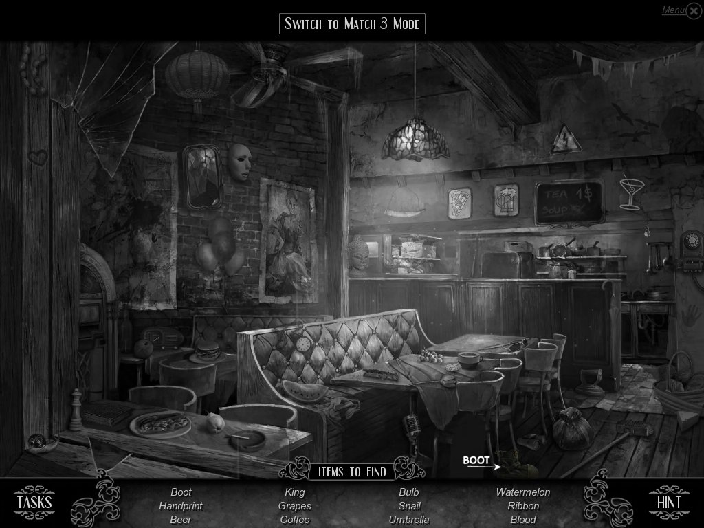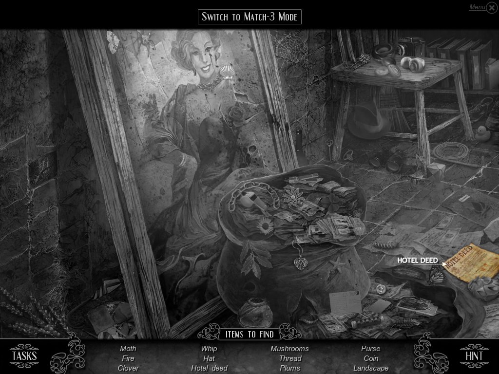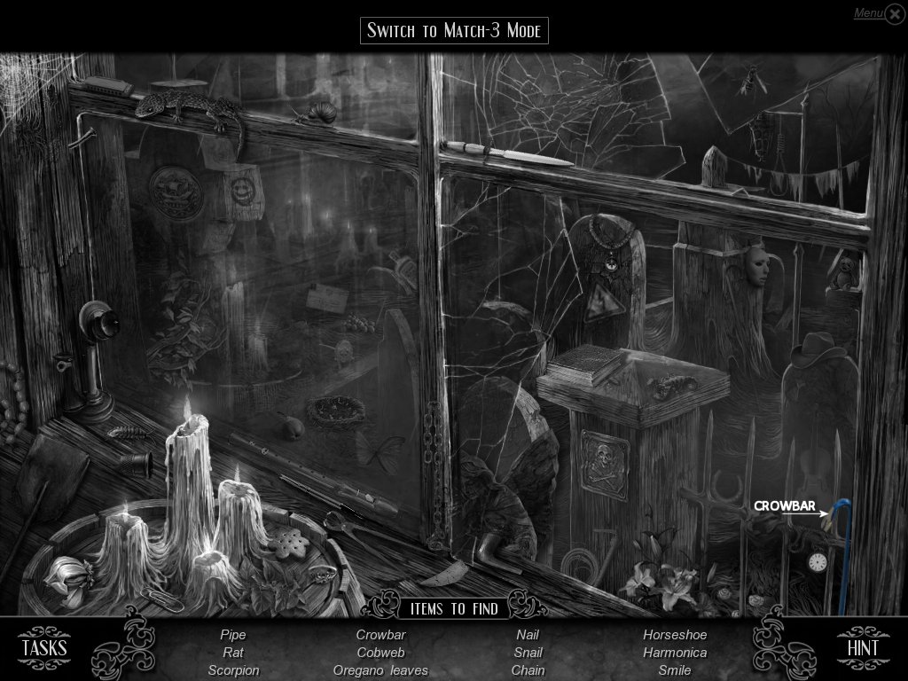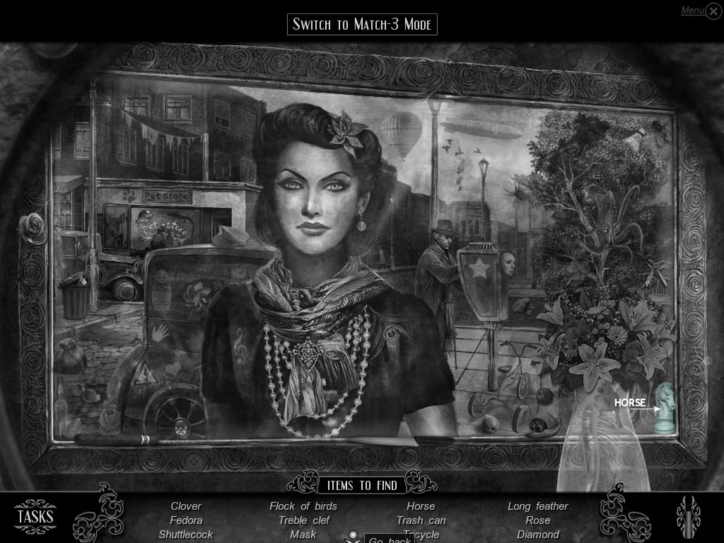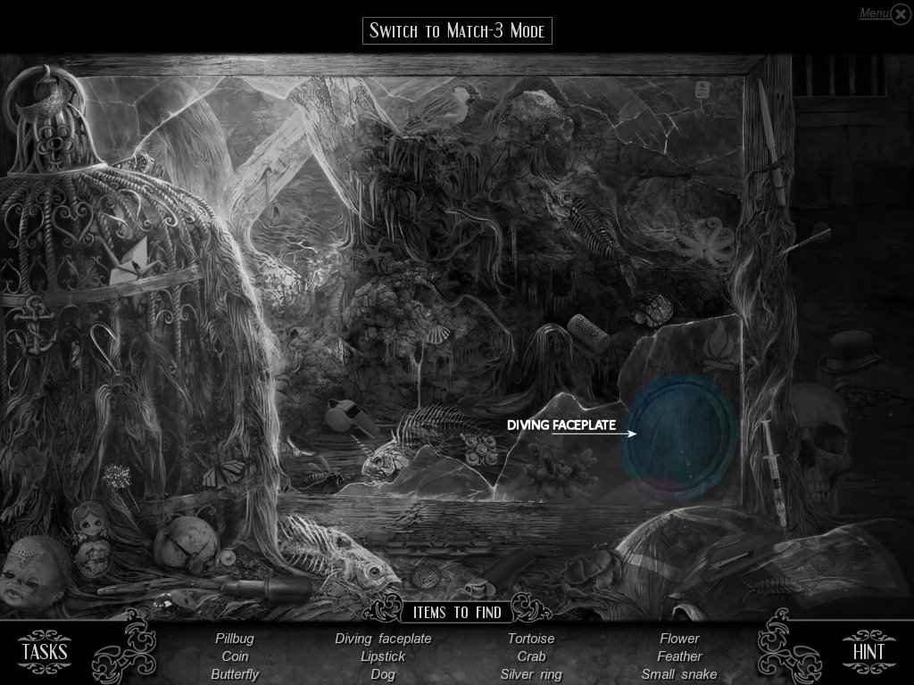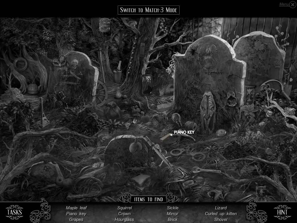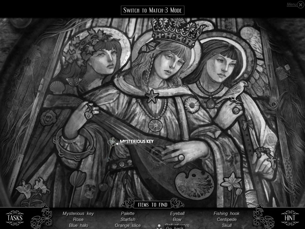 Hidden Object & Match-3: When you are in hidden object mode, you will notice a "switch to Match-3" at the top. By doing so, you can play a match-3 game. When certain objects are cleared from he board, it will automatically find hidden objects on your list. This is a great feature if you are stuck and have no hint handy. Hidden object areas are triggered by an event.