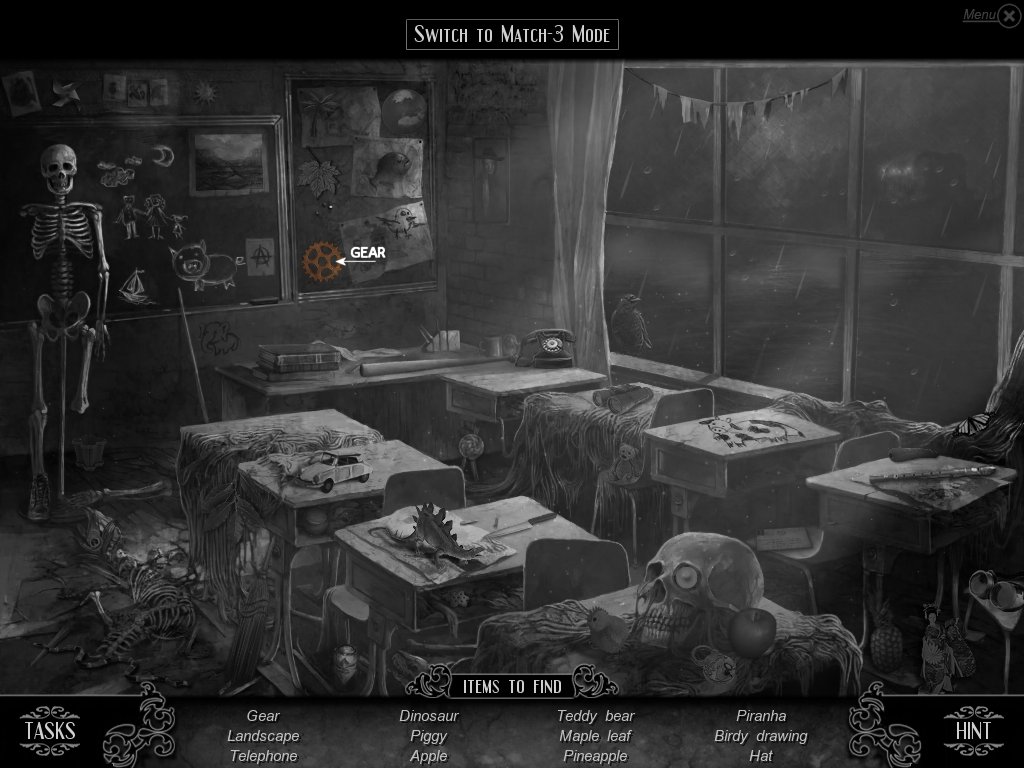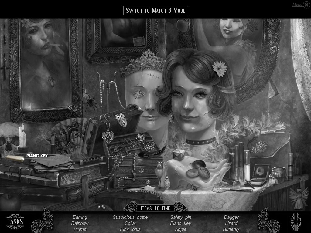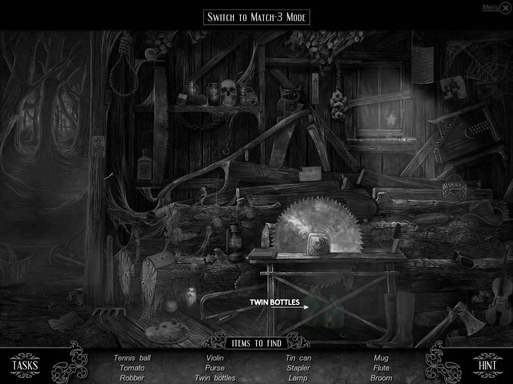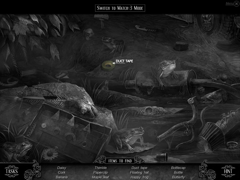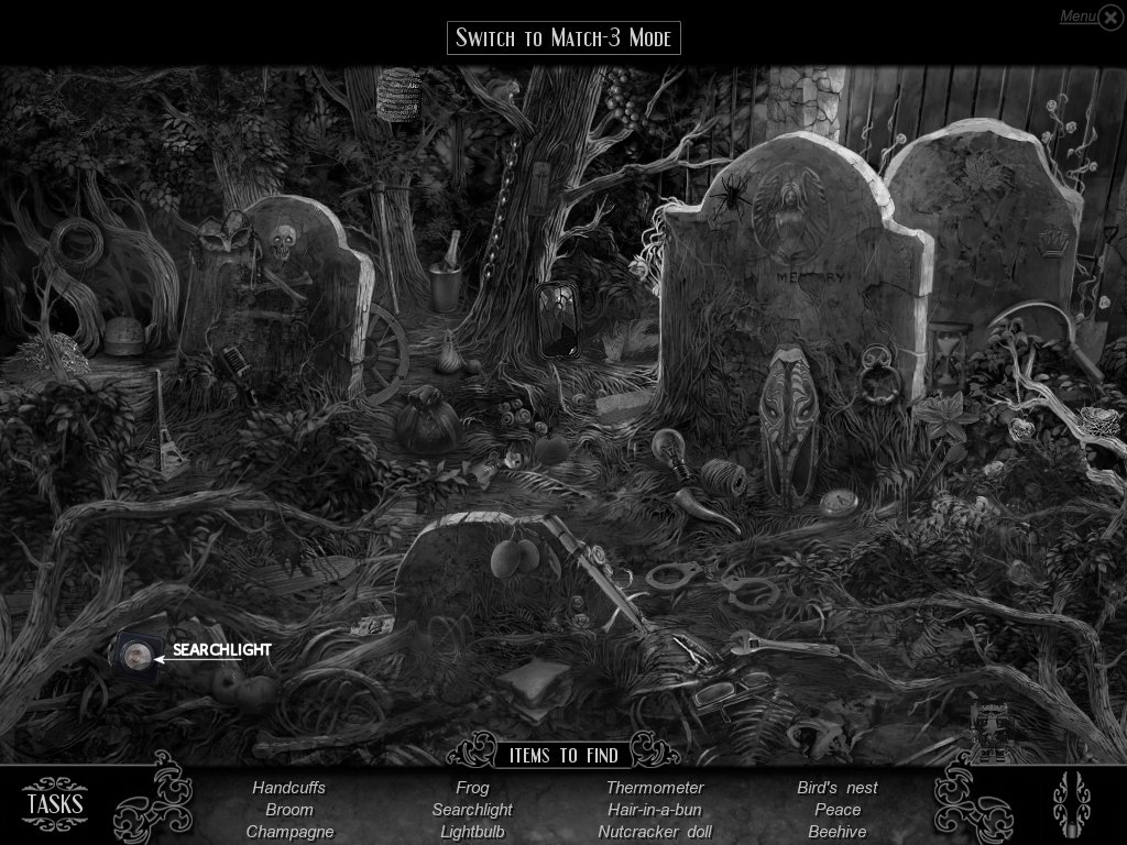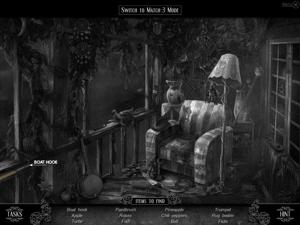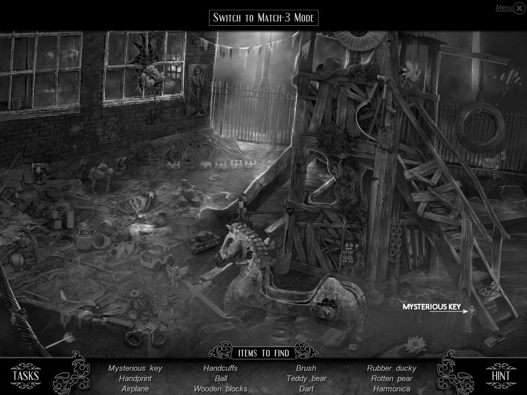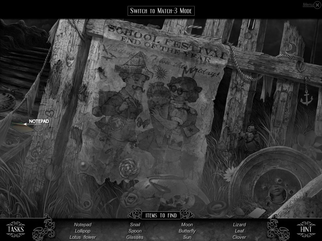 Hidden Object & Match-3: When you are in hidden object mode, you will notice a "switch to Match-3" at the top. By doing so, you can play a match-3 game. When certain objects are cleared from he board, it will automatically find hidden objects on your list. This is a great feature if you are stuck and have no hint handy. Hidden object areas are triggered by an event.