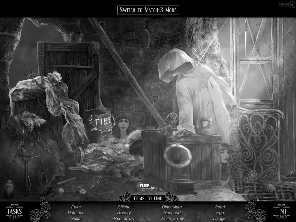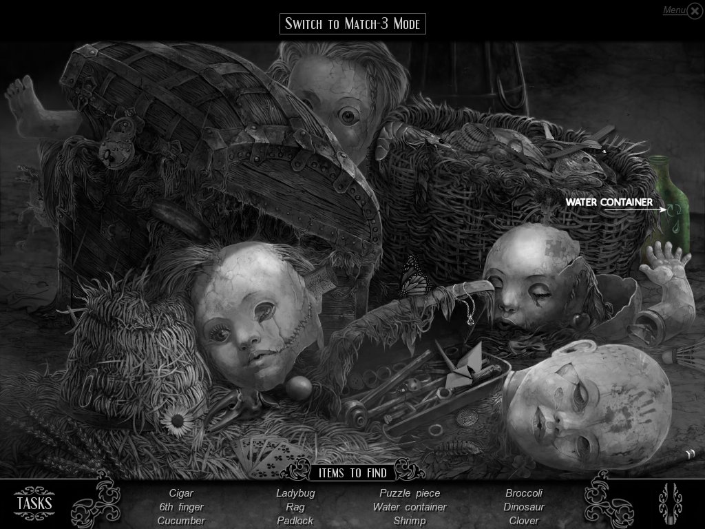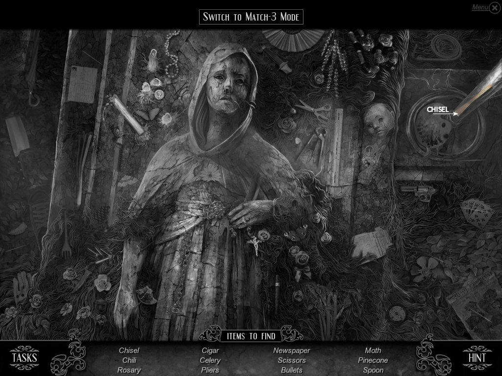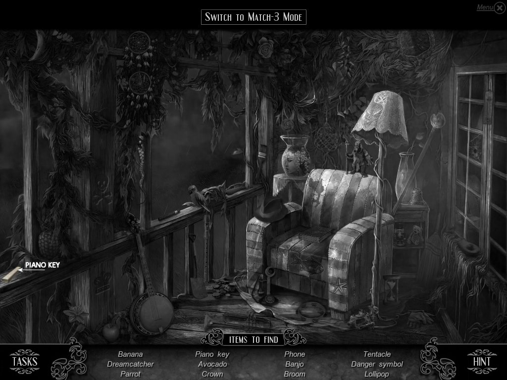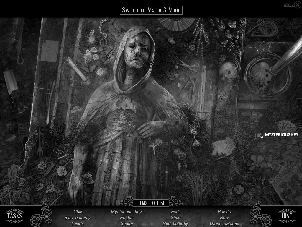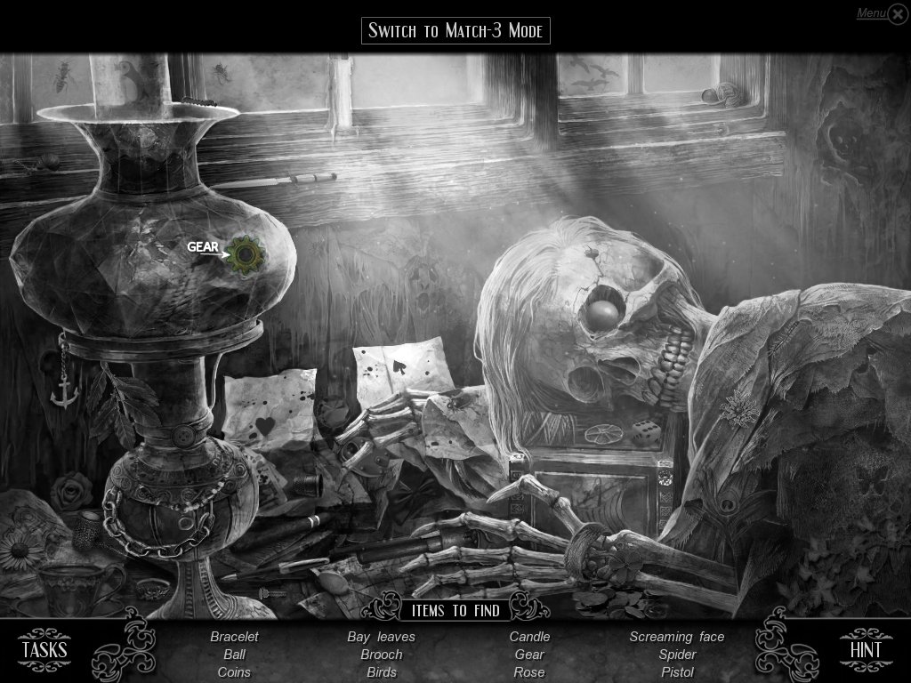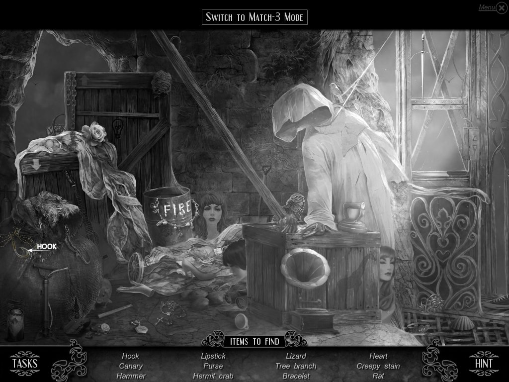 Hidden Object & Match-3: When you are in hidden object mode, you will notice a "switch to Match-3" at the top. By doing so, you can play a match-3 game. When certain objects are cleared from he board, it will automatically find hidden objects on your list. This is a great feature if you are stuck and have no hint handy. Hidden object areas are triggered by an event.