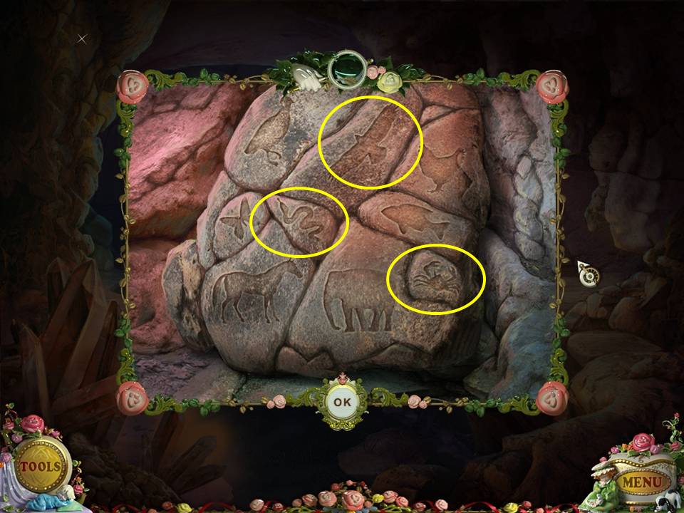 Pick up FELICIA'S BROOCH. Click down nine times. Zoom into the puzzle on the right cliff wall.