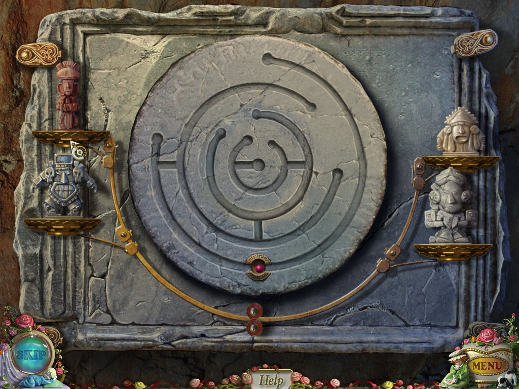 Place the IVORY STATUE, the METAL STATUE, and the WOODEN STATUE on the pedestals to activate the game. The object of the game is to shift the board to maneuver the ball into the golden hole. Click on any two statues to swap their positions. Any âswapâ will cause the board to shift. If you want the board to shift right, place the heavier statues on the right and vice versa.