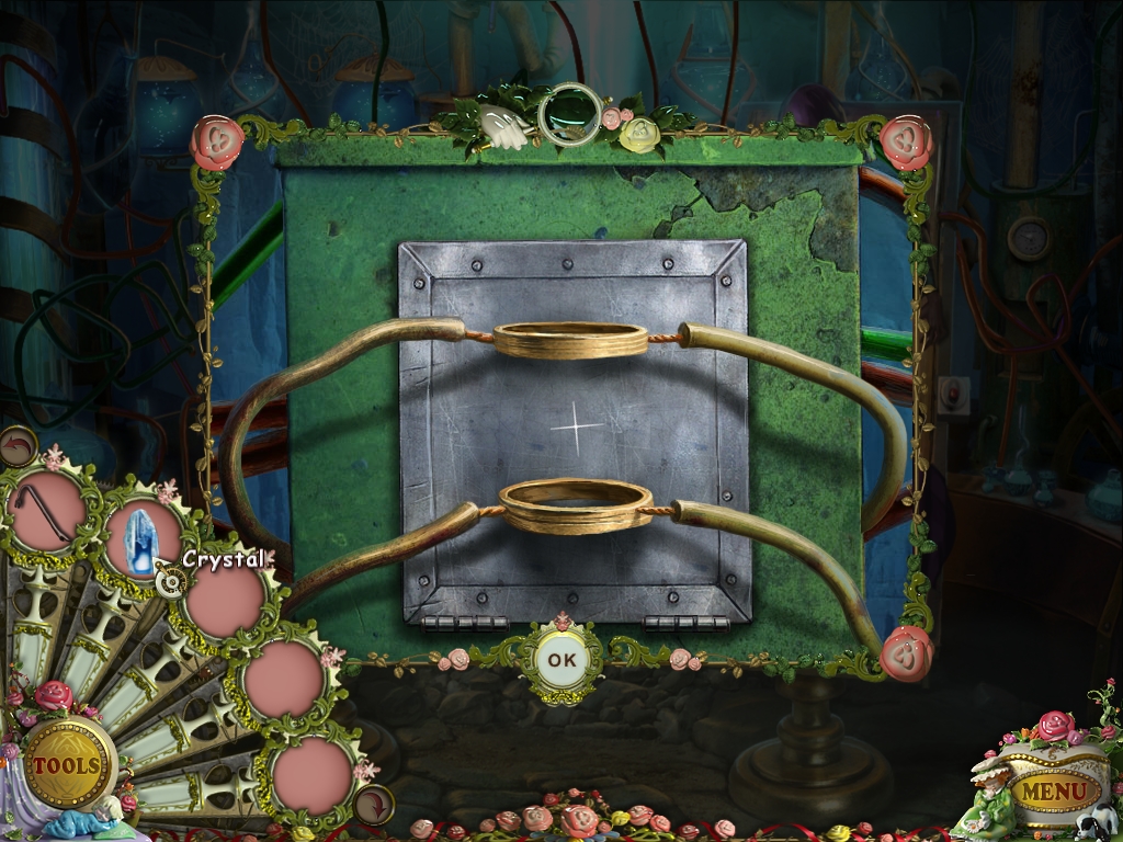 Zoom into the center of the device between the bodies of Felicia and Suzy. Place the CRYSTAL within the two metal bands. Click on the panel to initiate a puzzle.