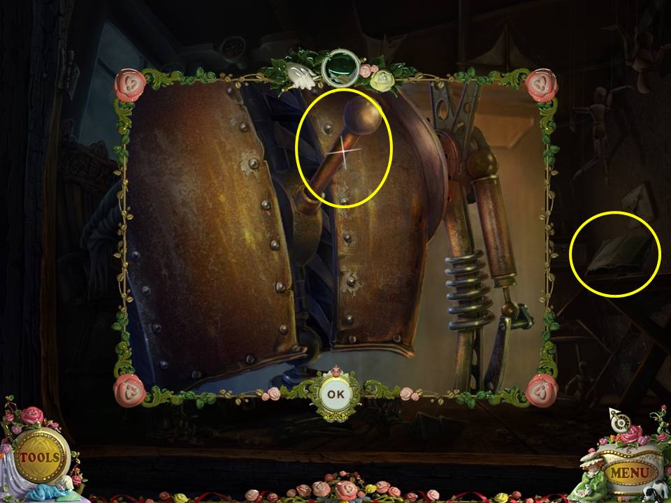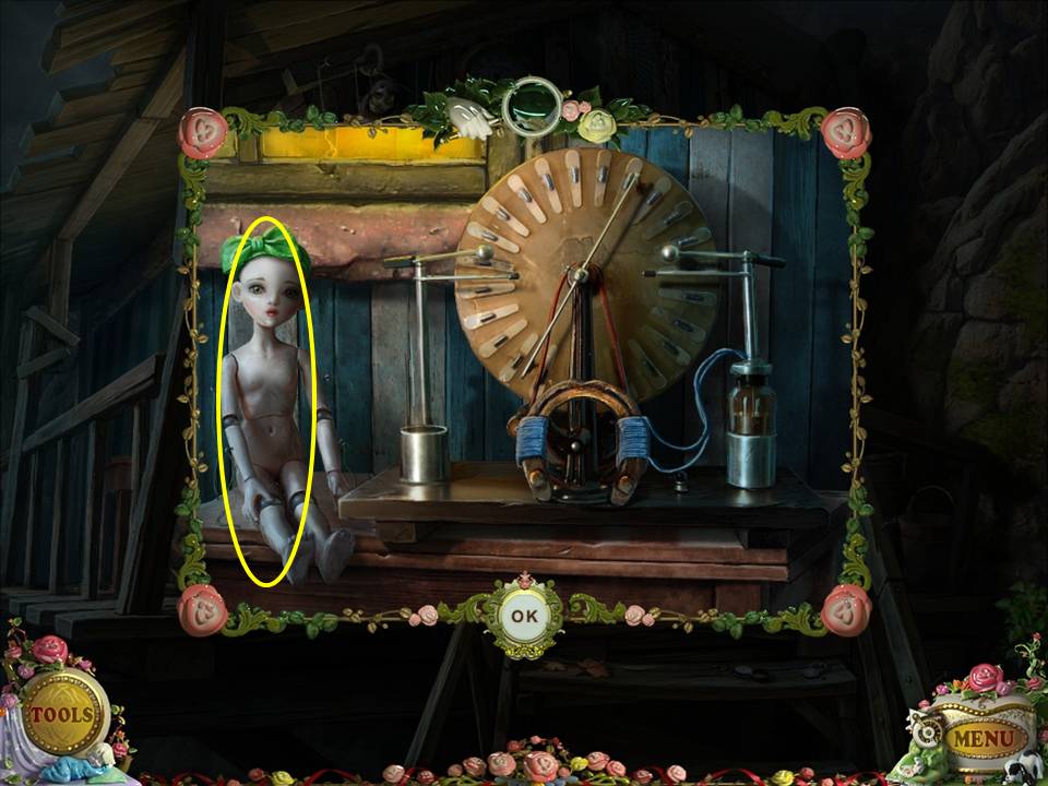 Pick up the PUPPET WHEEL on the lower left. Return to the Puppet Makerâs Shop and play the Hidden Object Area there.