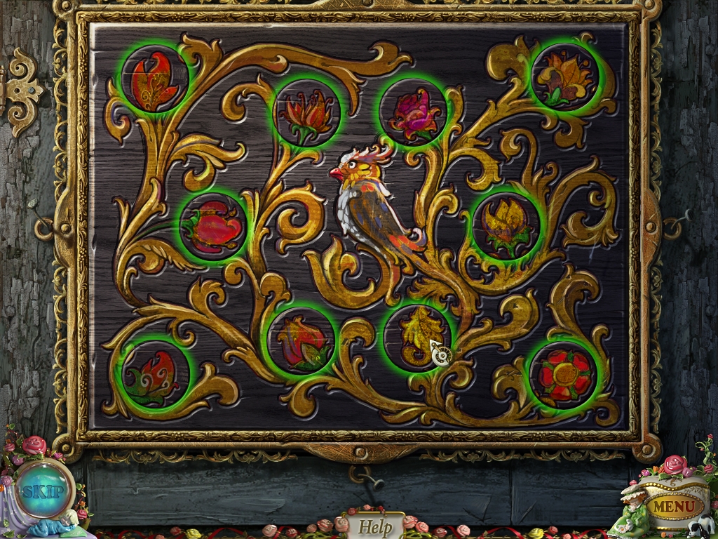 Initiate the game by inserting the 3 FLOWER DISCS on the board. The object of the game is to swap discs until the picture is complete. Click on any two discs to swap their positions. The best way to tackle this is to examine the stems and match the stem position on the disc with the correct position on the background board. When complete, enter the General Store.