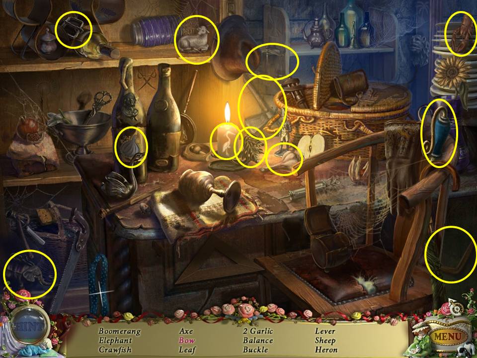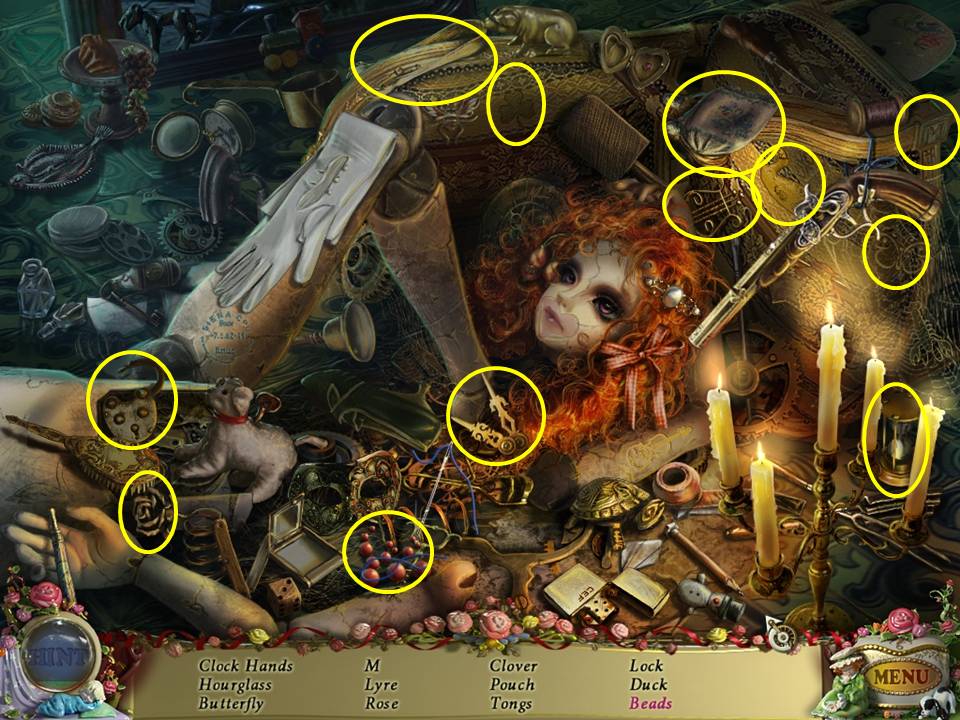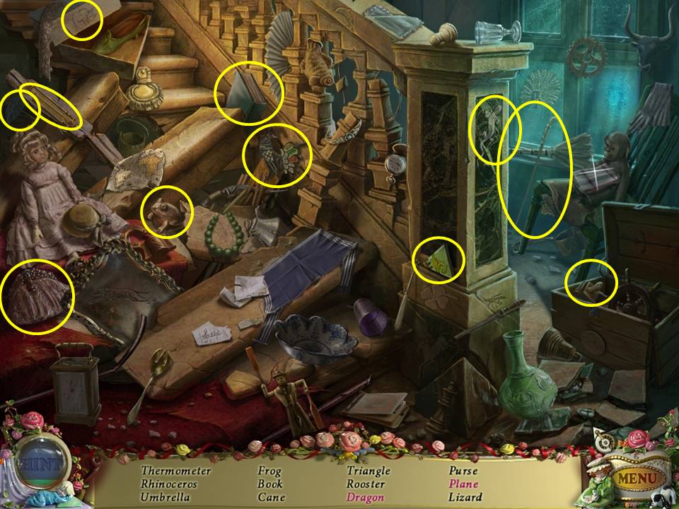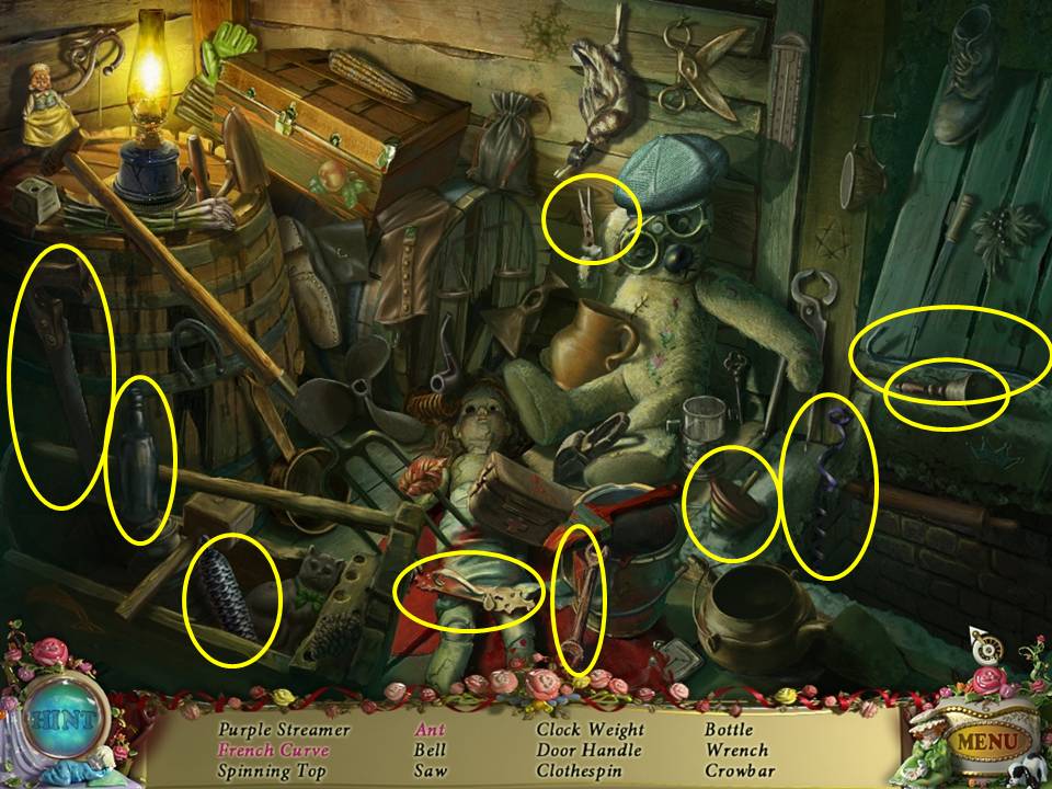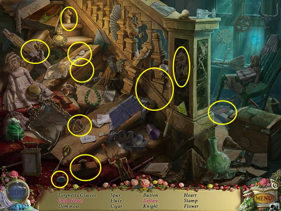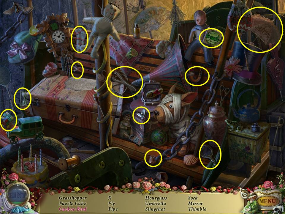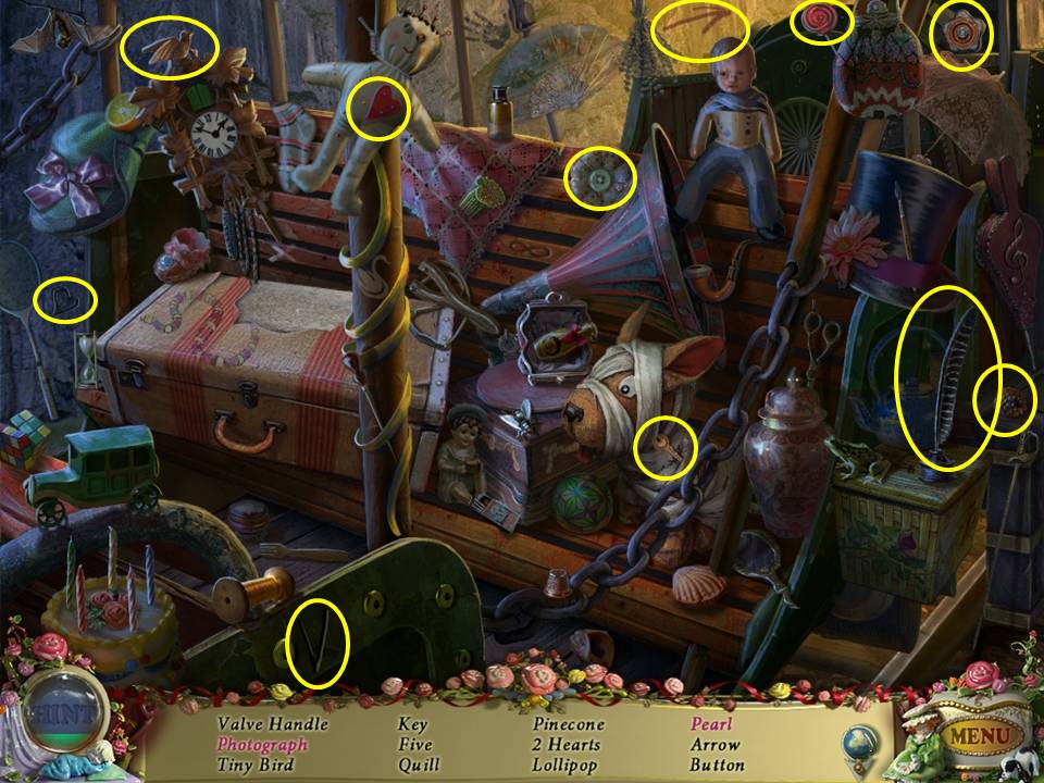 Hidden Object Areas sparkle. Zoom into these sparkling areas to initiate that activity. Often these areas contain inventory items you will require to proceed in the game. If an item is listed in pink, it is âhiddenâ from view. You may need to click to move or relocate something to reveal this particular item.