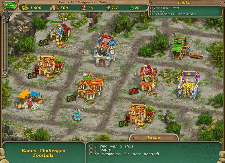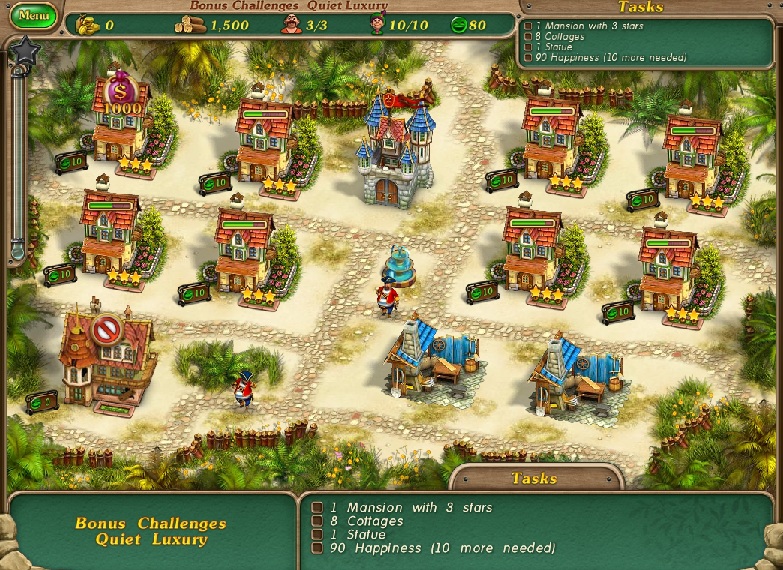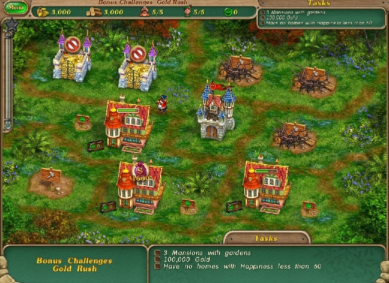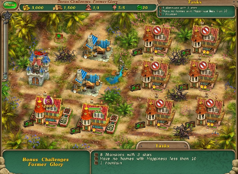 - Build 3 more mansions and upgrade fully (you may reach your goals before finishing)