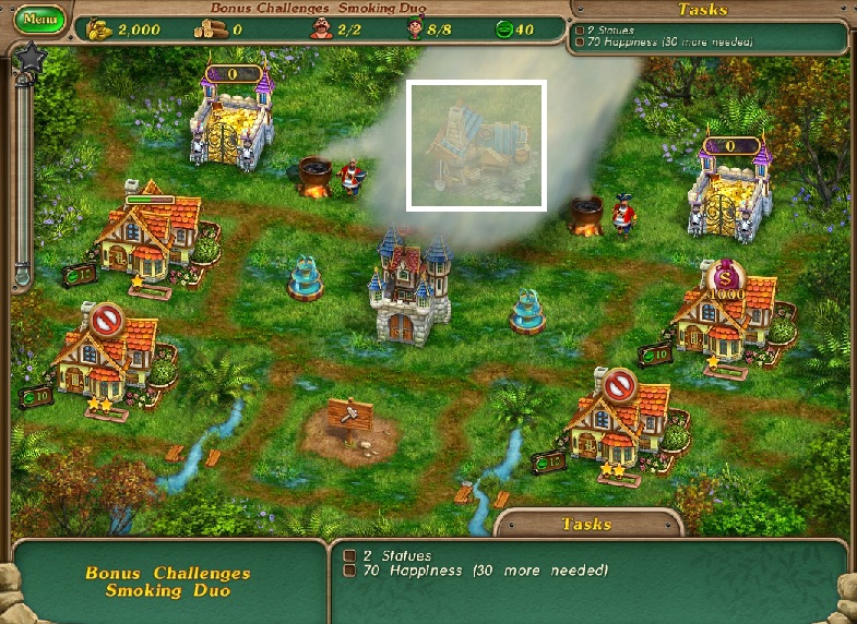 - You only have 2 workers and can't hire more until you earn enough money (30,000 gold) to pay off the bandit