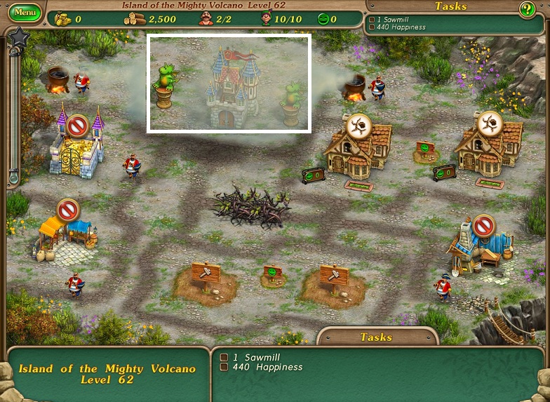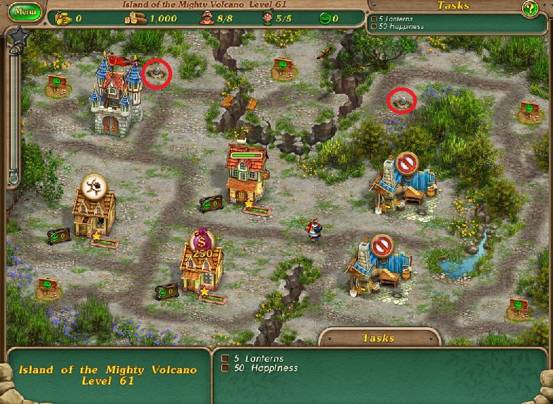 - You can either destroy buildings or keep running the workshops to finish off the lantern goal