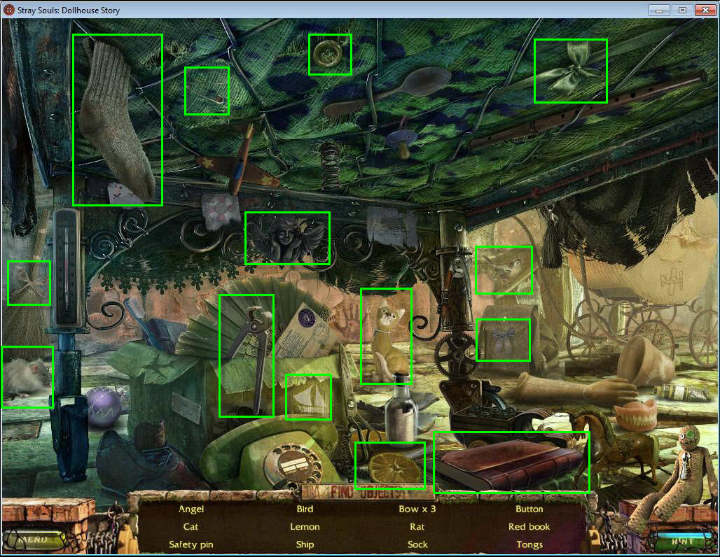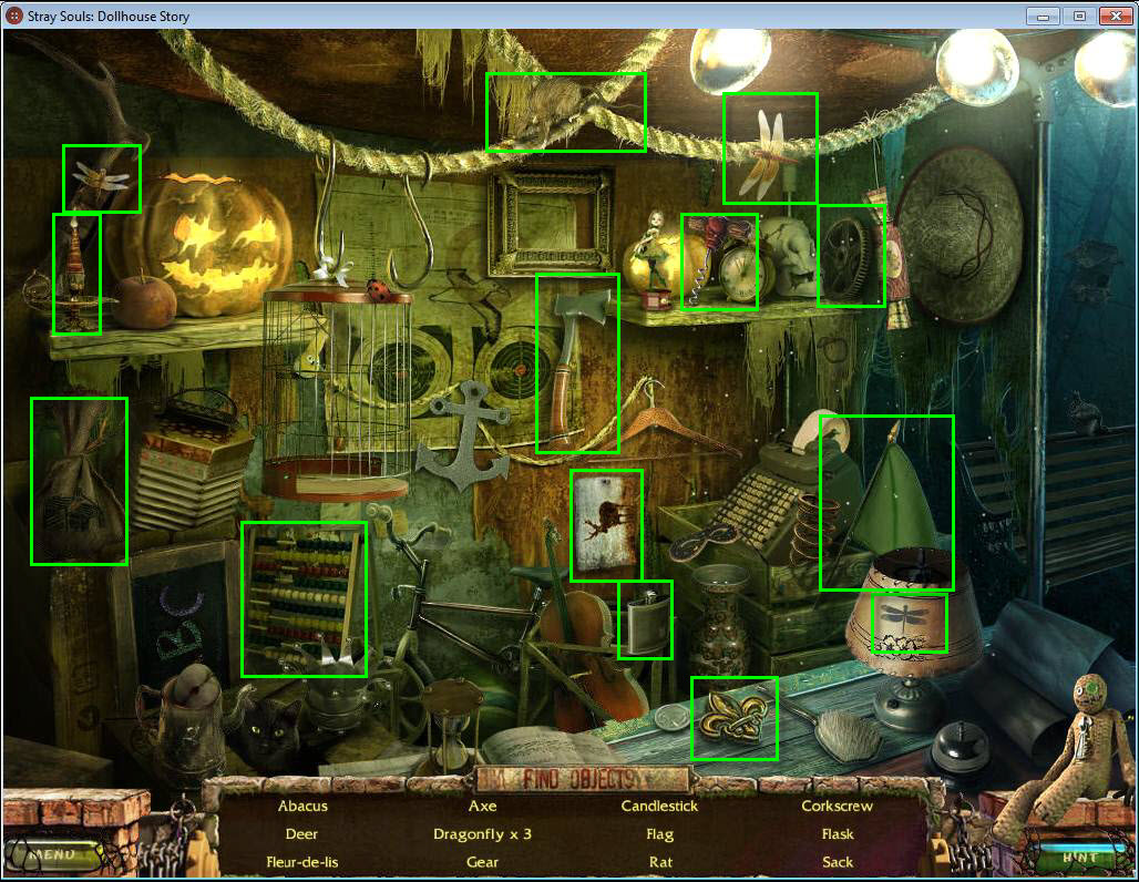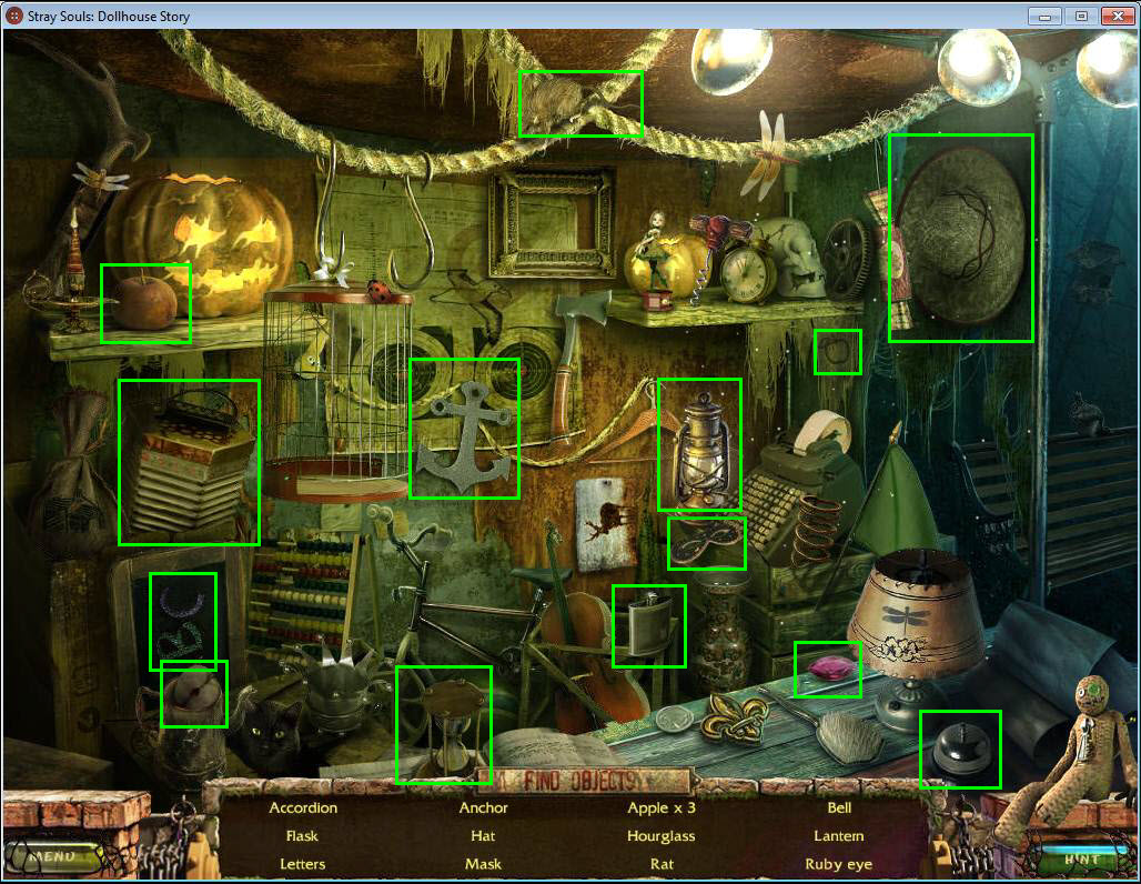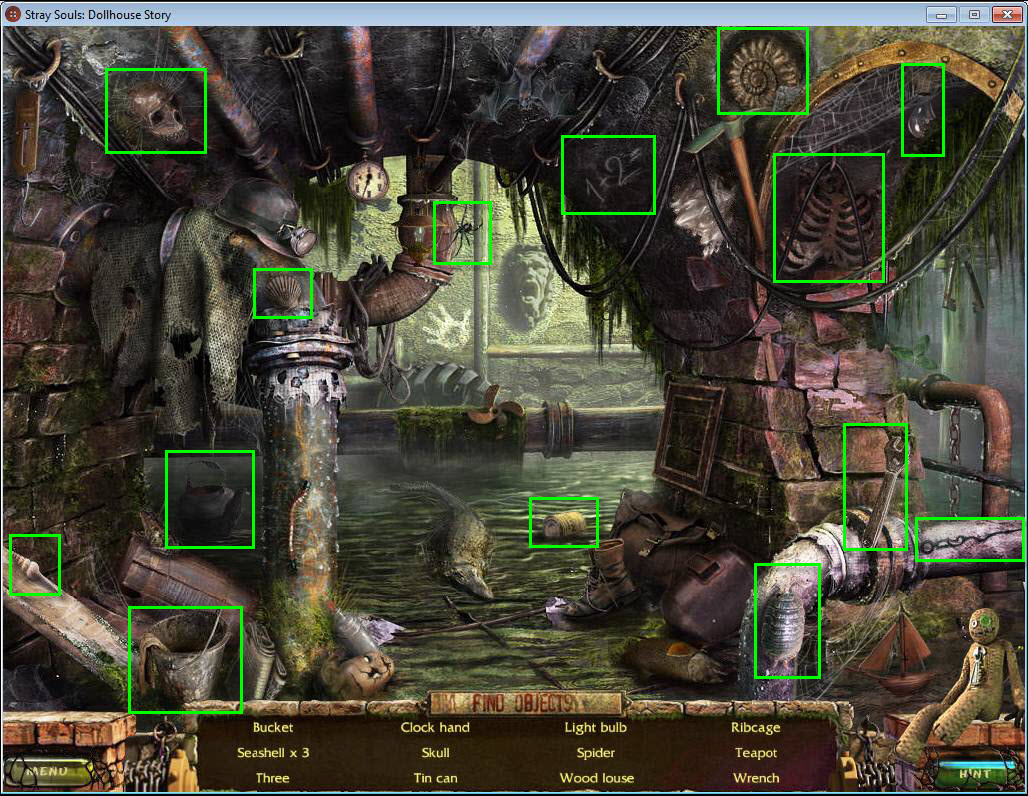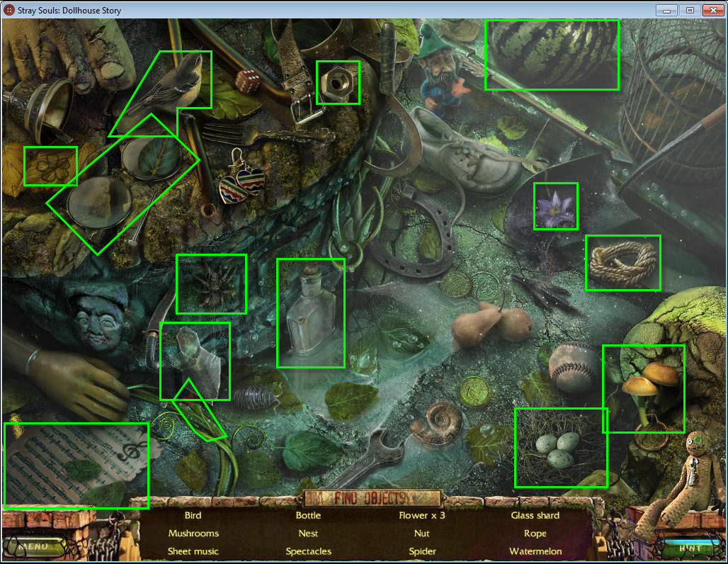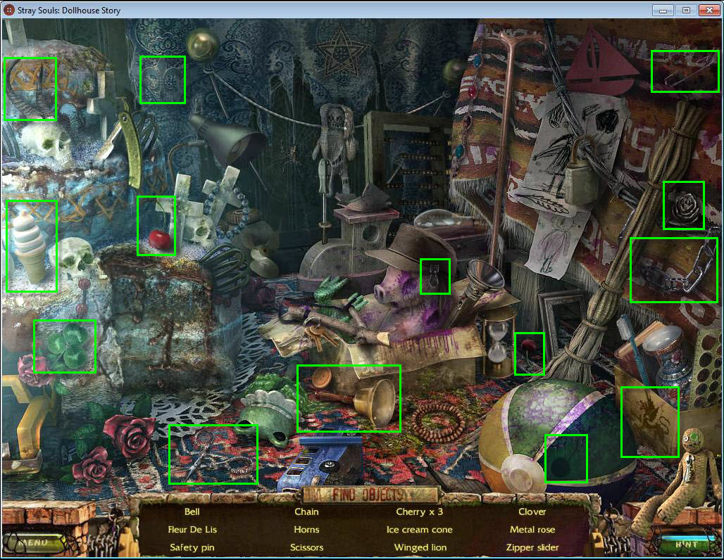 - Find all the items in the hidden object area.