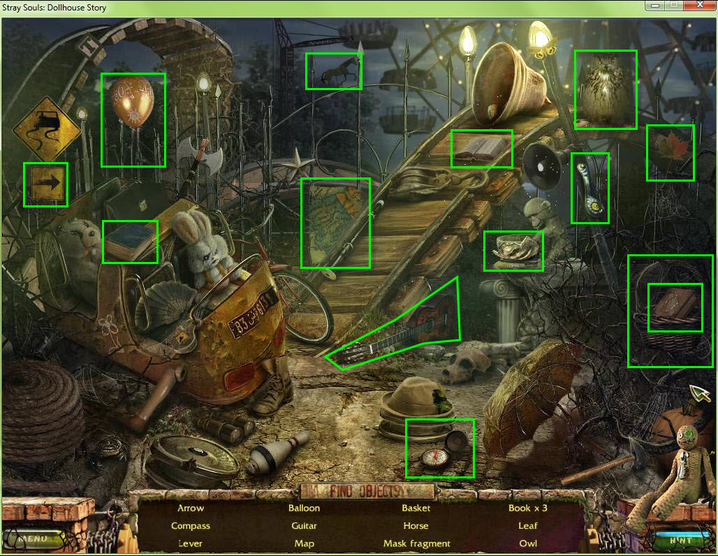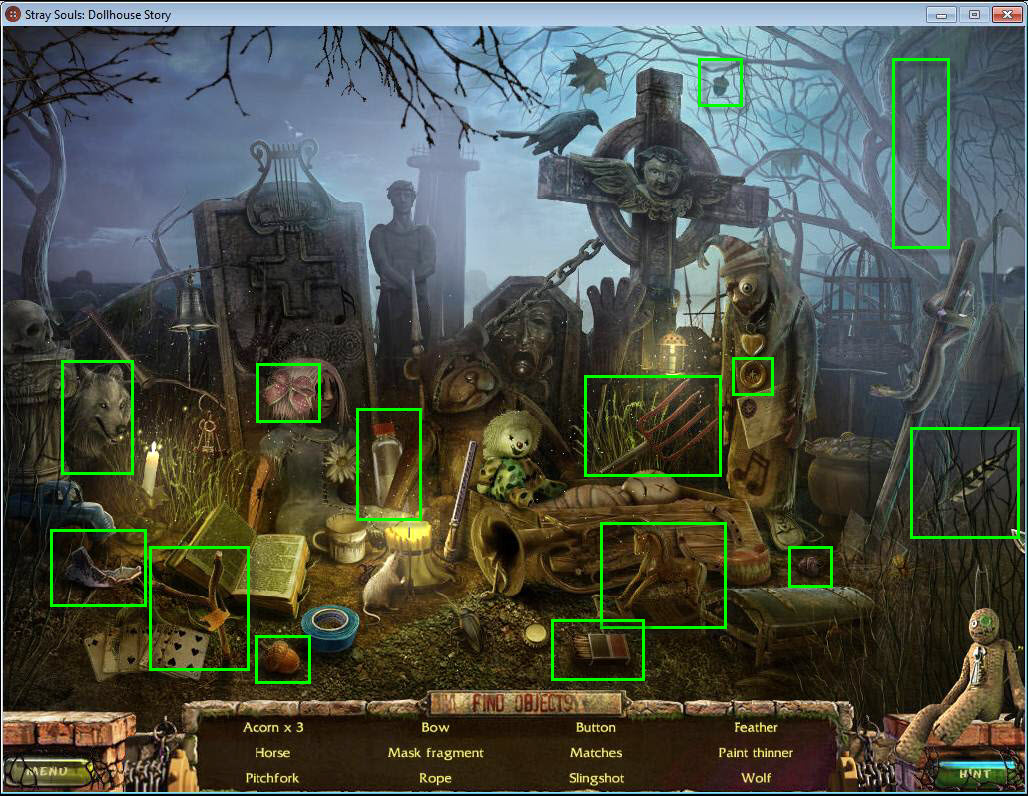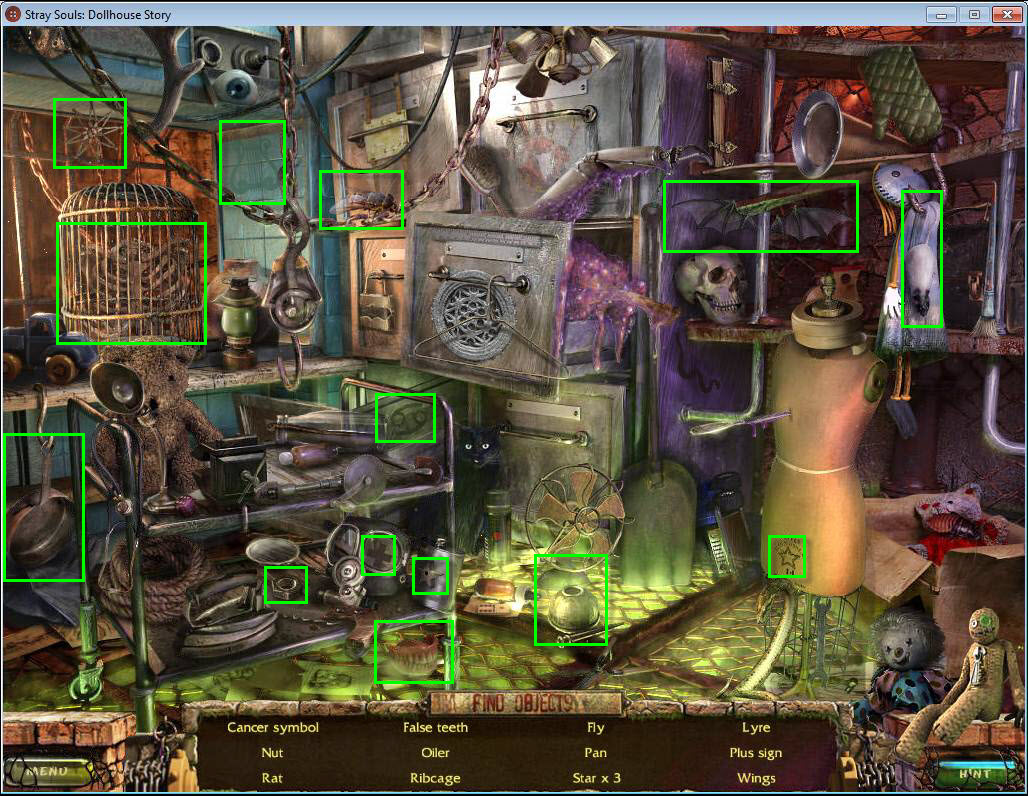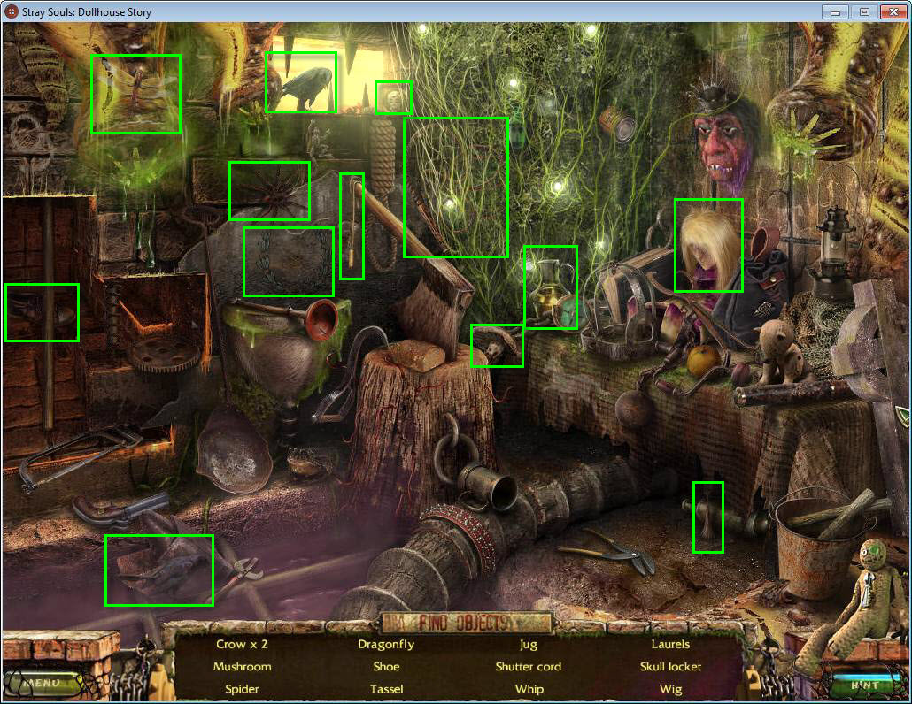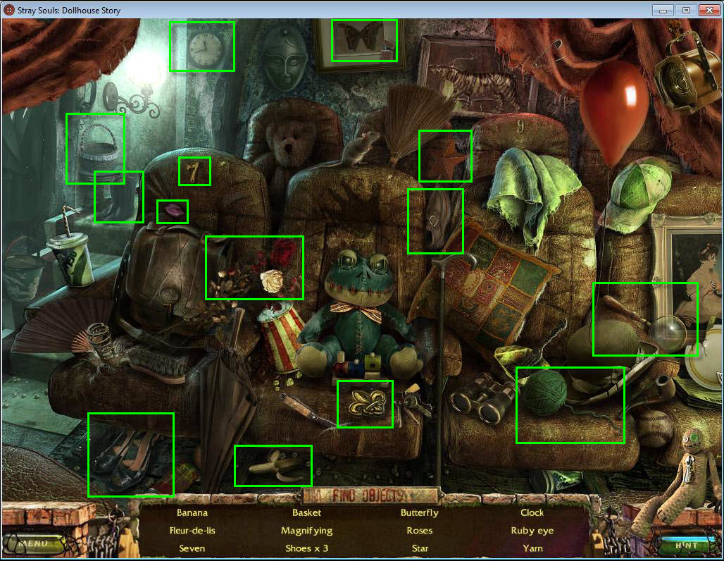 - Find all the items in the hidden object area.