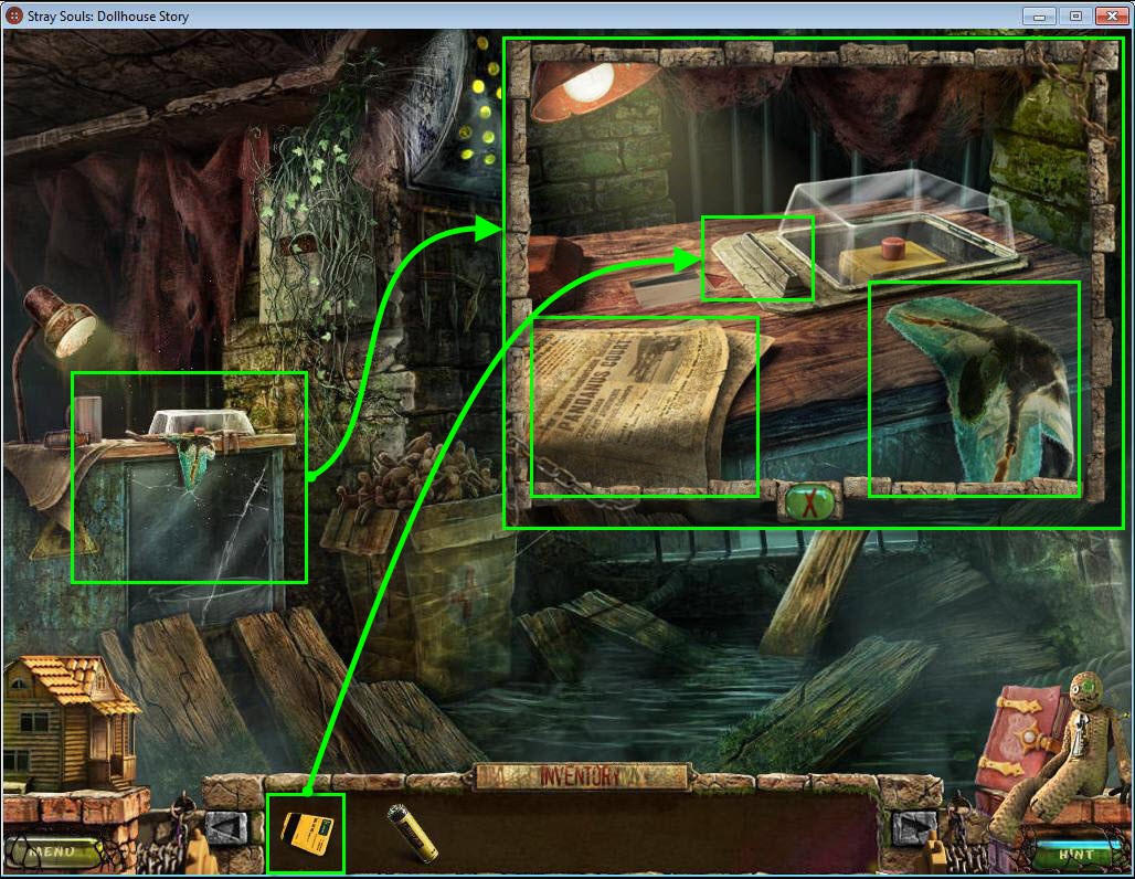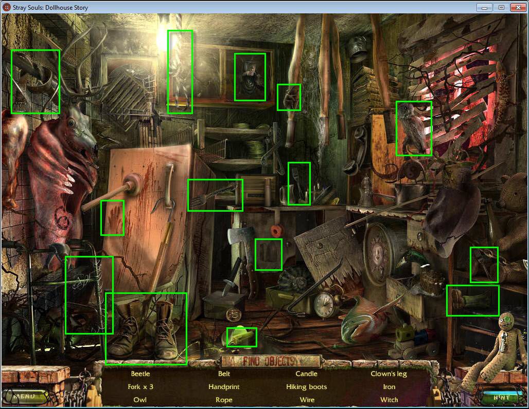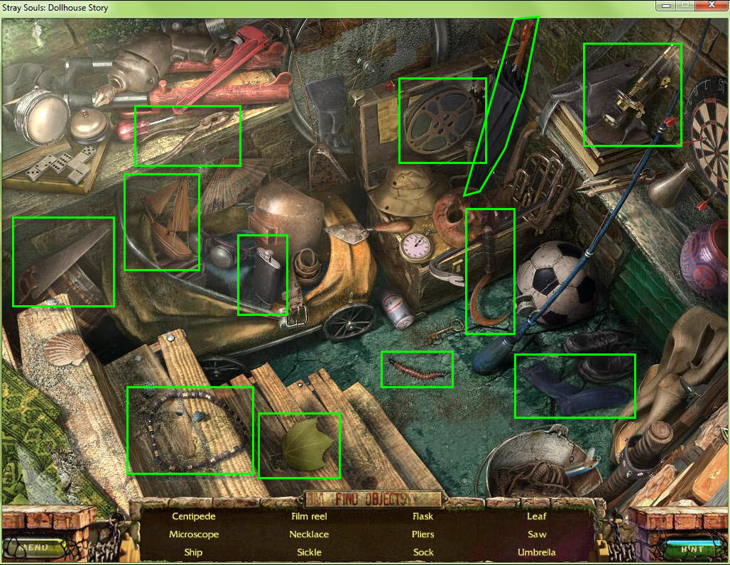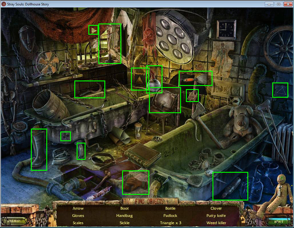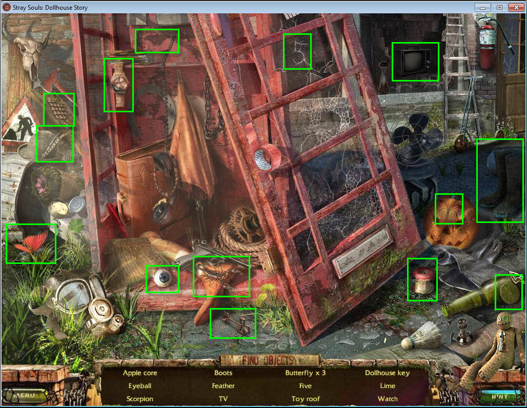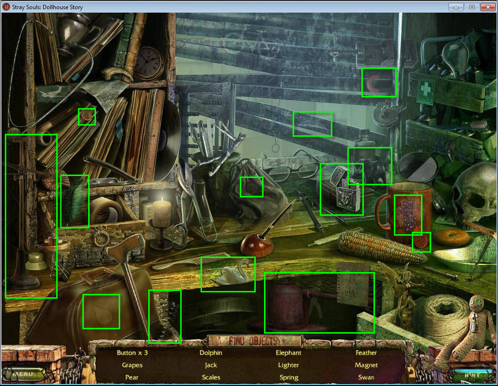 - Find all the items in the hidden object area.
