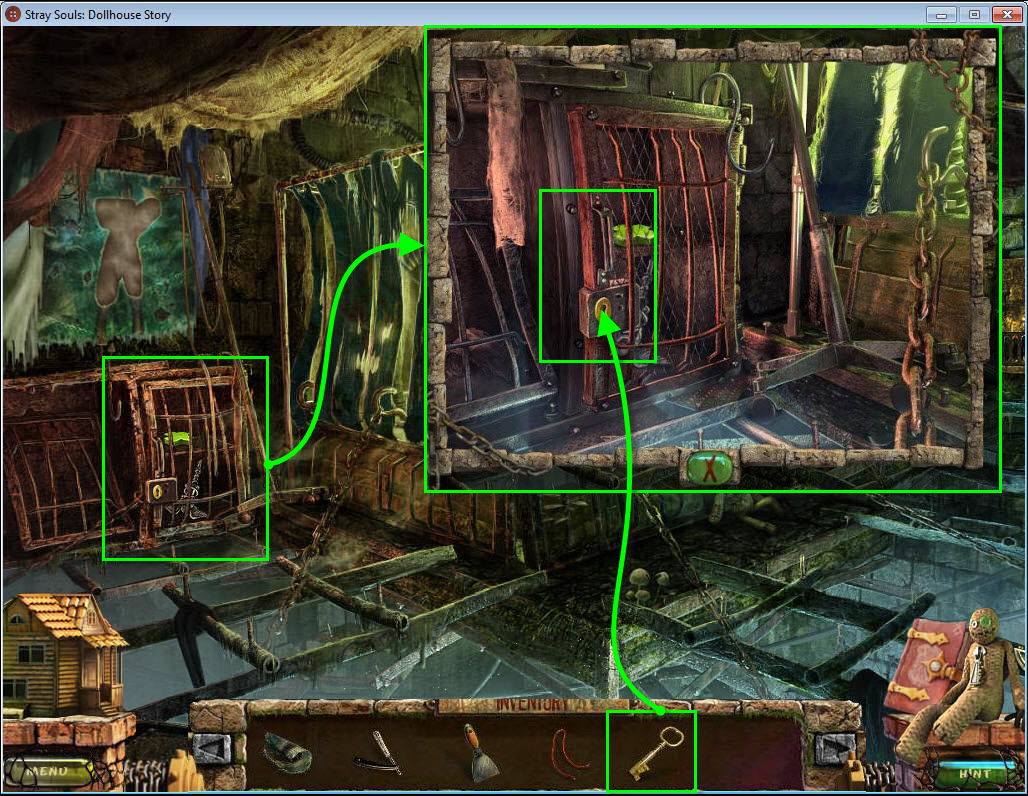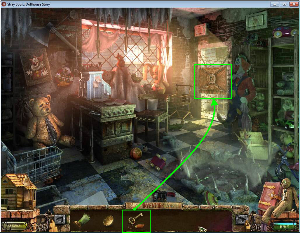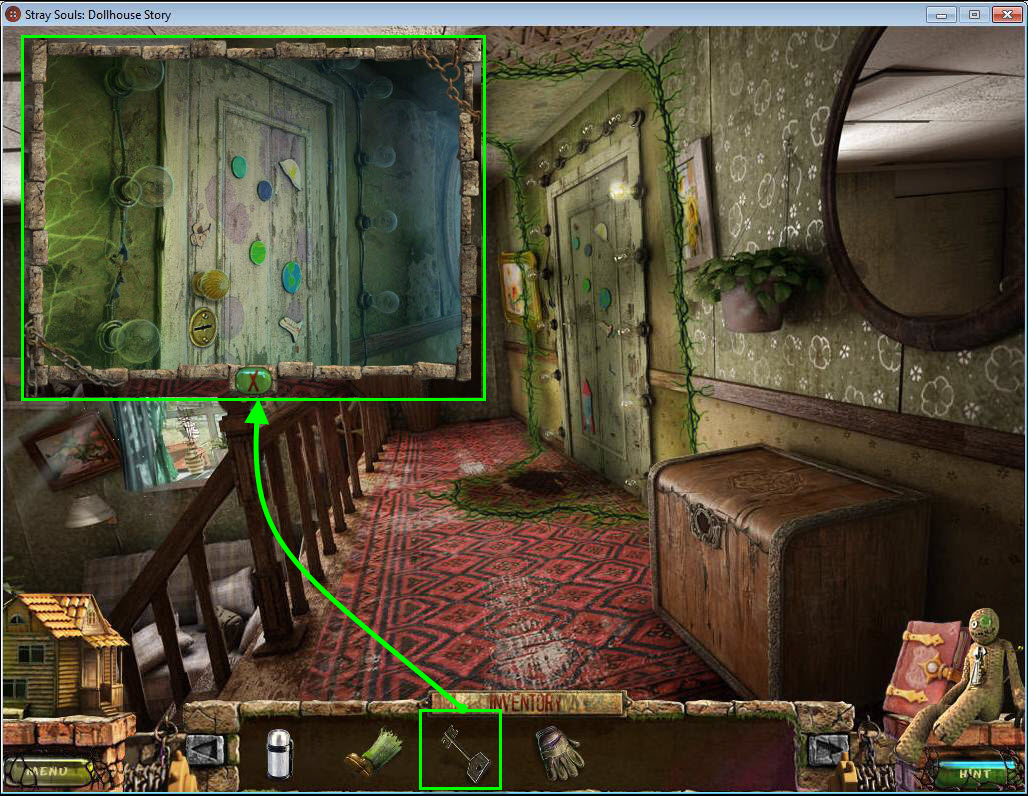 - Use the DOLLHOUSE KEY on the dollhouse door.