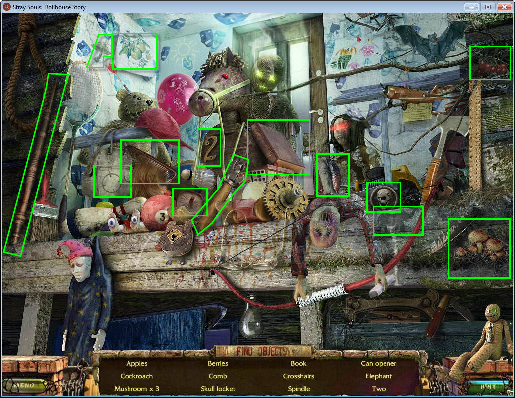 Stray Souls: Dollhouse Story Walkthrough includes step-by-step instructions on how to beat the game as well as locations for all hidden objects, solutions to puzzles, screenshots, and multiple videos. Stray Souls: Dollhouse Story is a Hidden Object Adventure game that pits you against a demonic presence who has kidnapped your husband. Can you save Sam and solve the mystery of his childhood?