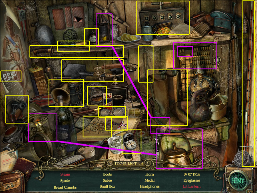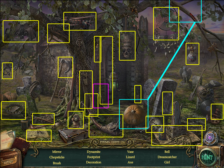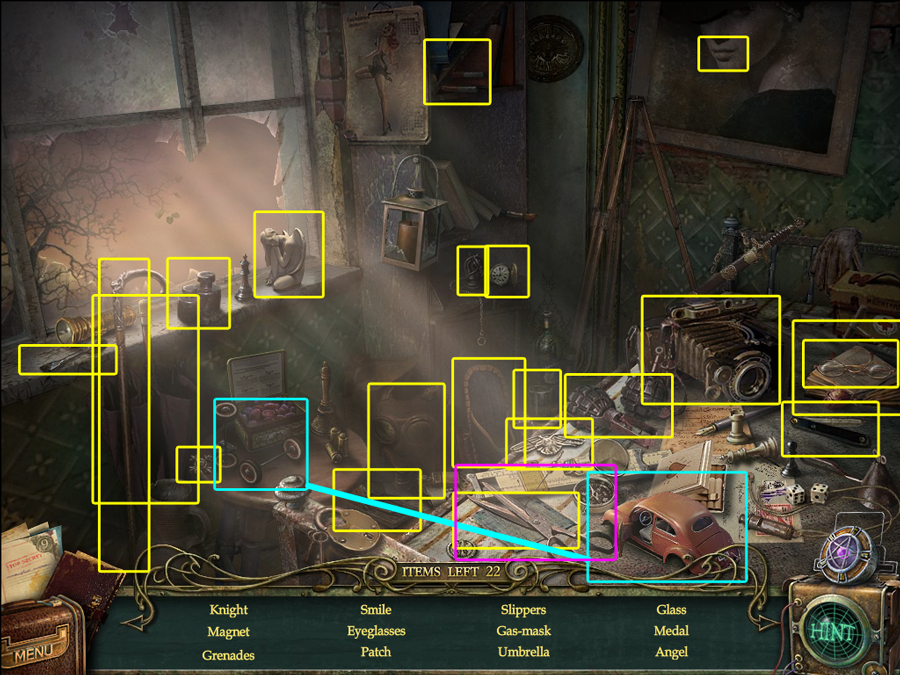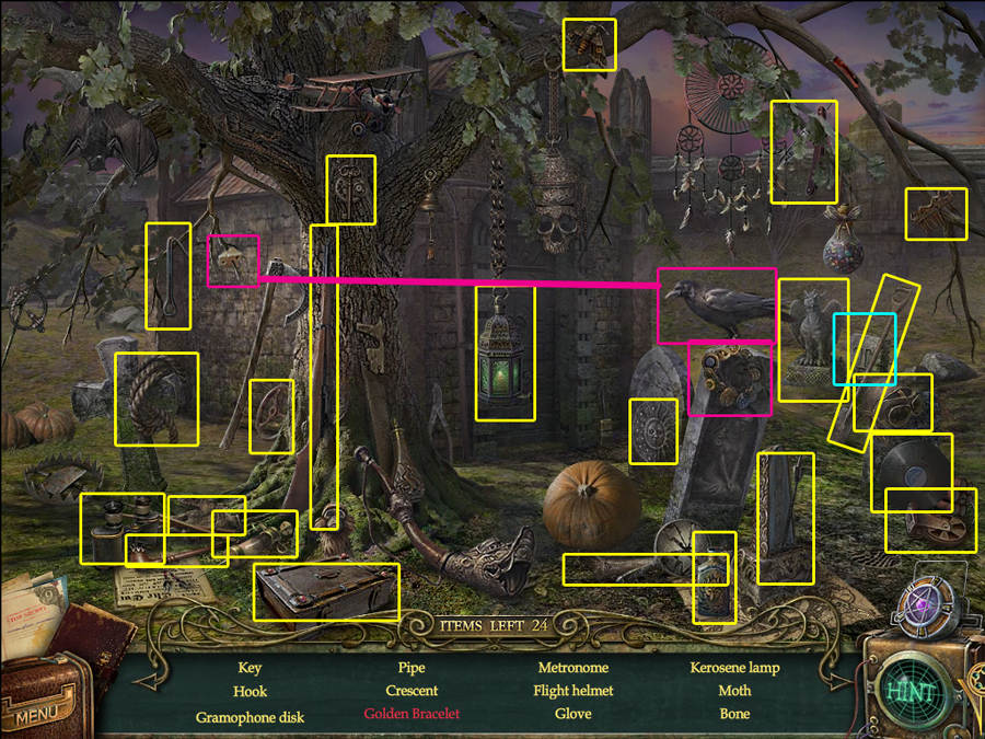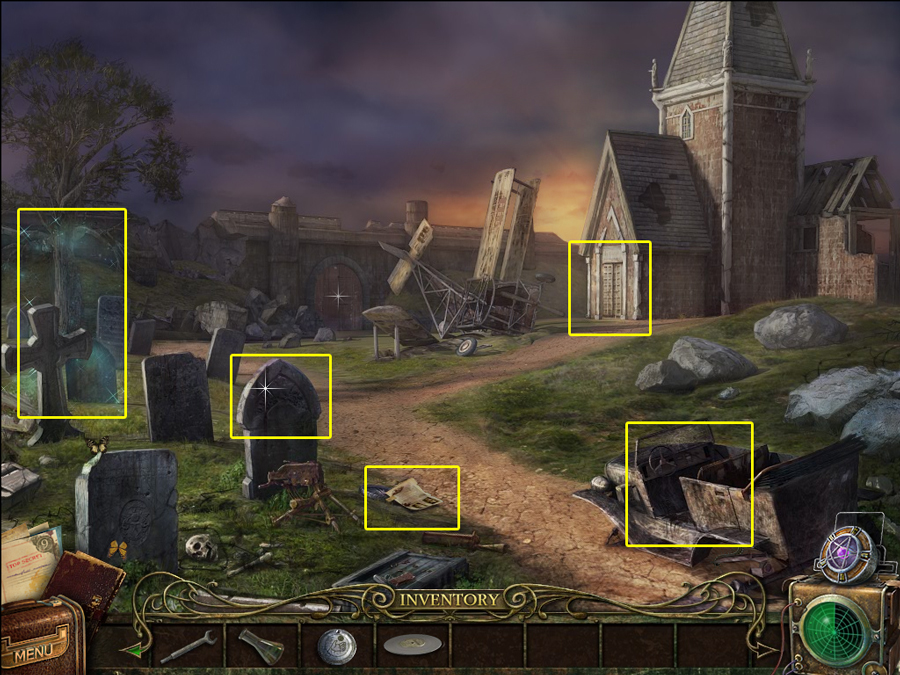 * Exit the hanger and click on the tombstone to access the hidden object area