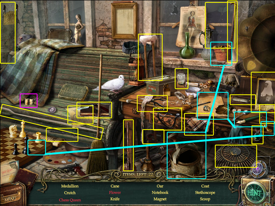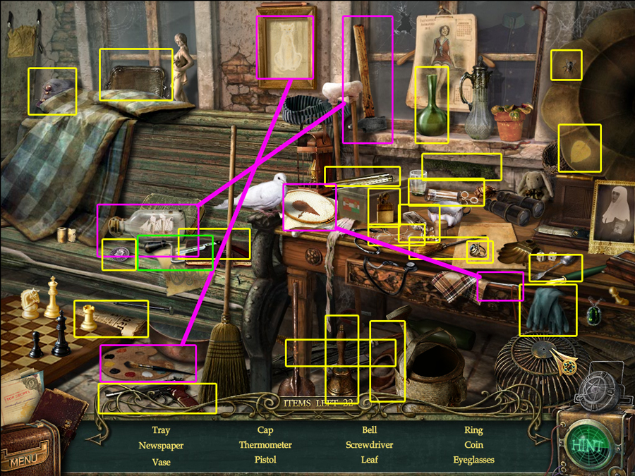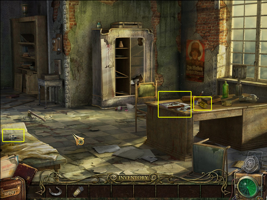 Top Secret Files: In the lower left hand corner of your screen, this shows you the experiments conducted at the hopsital. You will need to find the files throughout the game